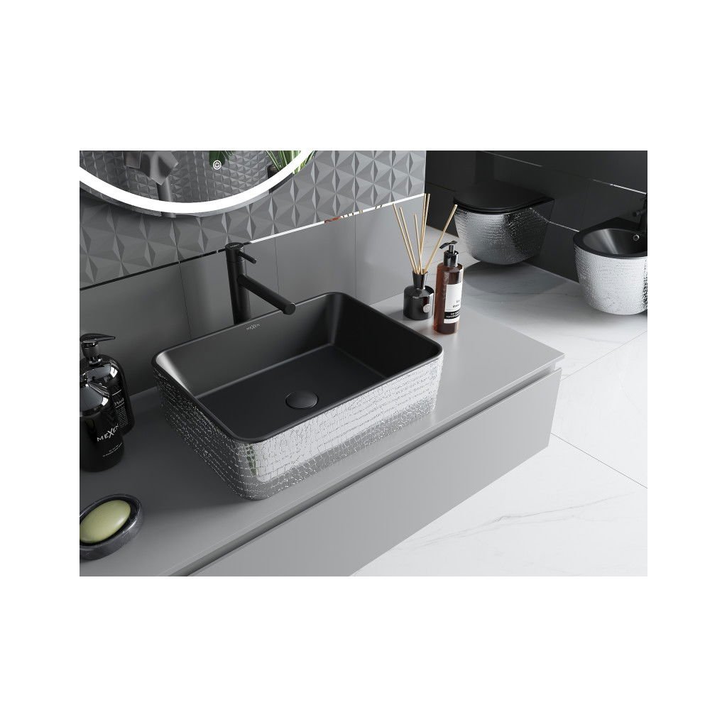 Mexen Catia, umývadlo na dosku 48x37x14 cm, čierna matná-strieborný vzor, 21314872