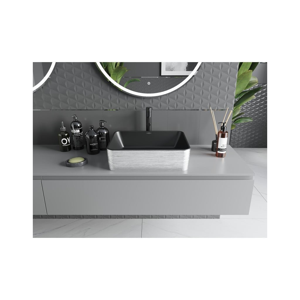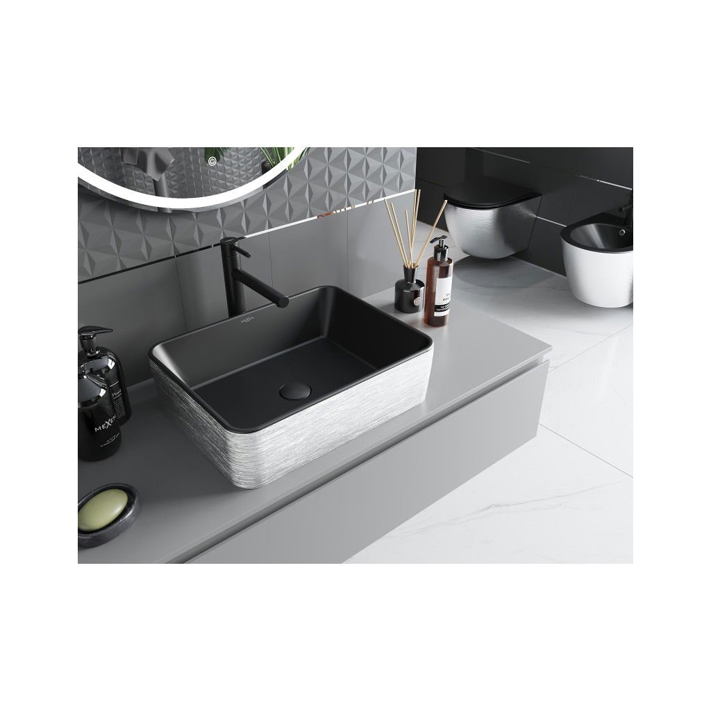 Mexen Catia, umývadlo na dosku 48x37x14 cm, čierna matná-strieborný vzor, 21314873