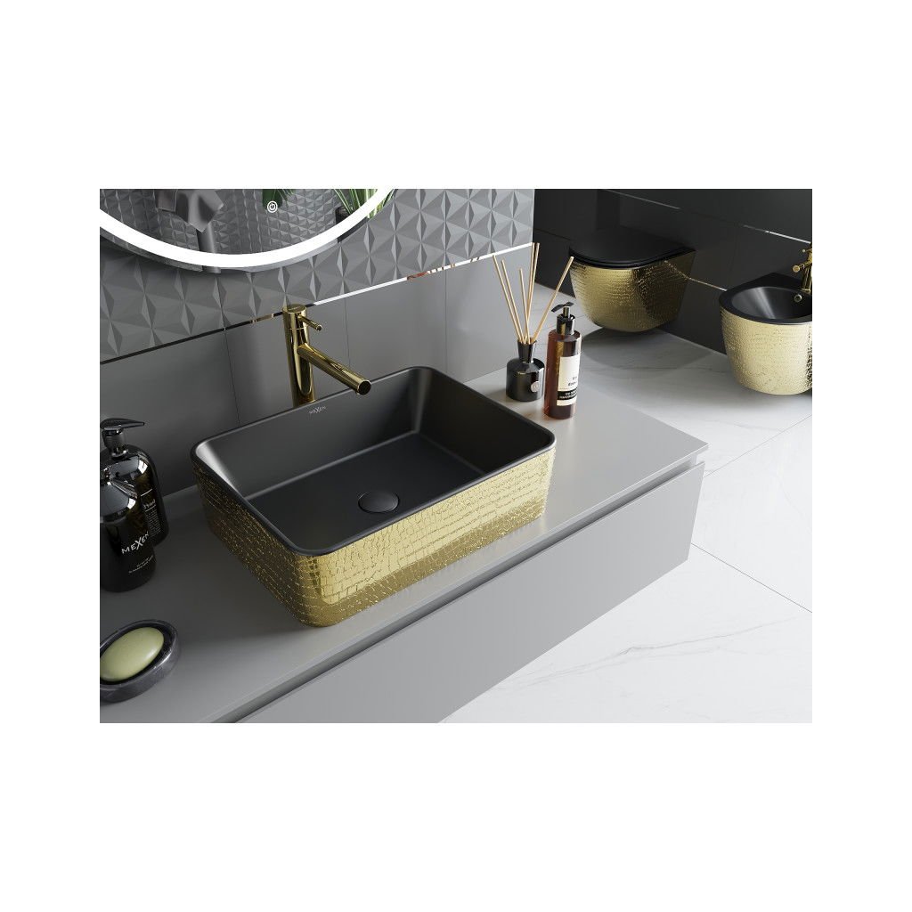Mexen Catia, umývadlo na dosku 48x37x14 cm, čierna matná-zlatý vzor, 21314878