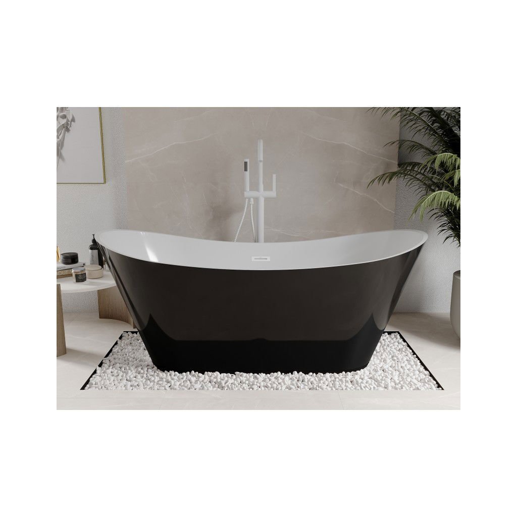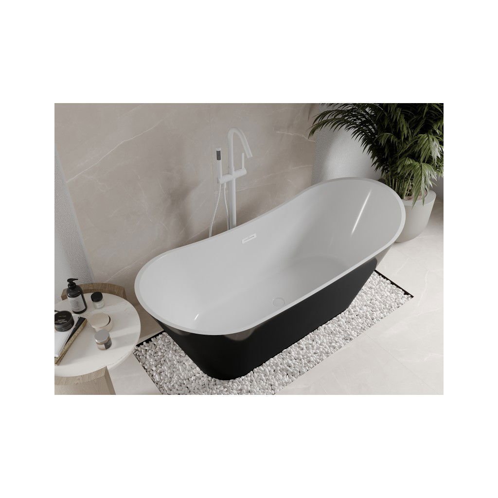 Mexen Celia, voľne stojaca vaňa 170 x 75 cm, biela-čierna, biely prepad, 52331707575-20