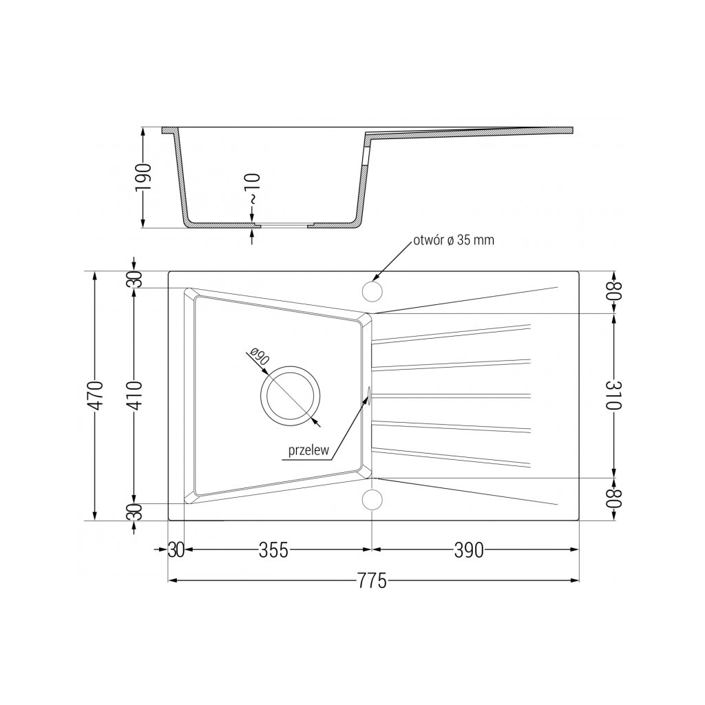 - Odtokový otvor: 3,5 ”;fi = 90 mm
