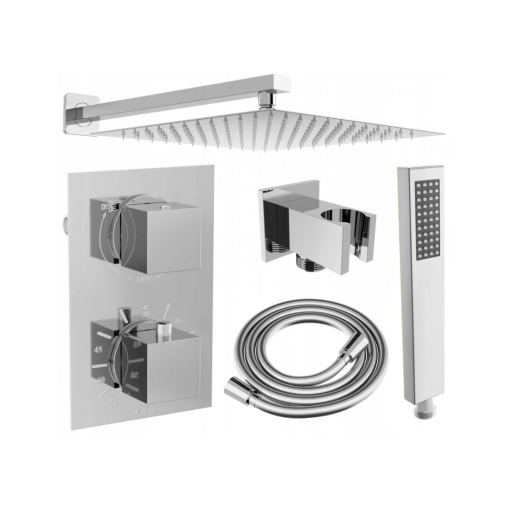 Mexen Cube DR02 podomietkový sprchový set s dažďovou sprchou 25x25 cm (6v1), chrómová, 77502DR0225-00