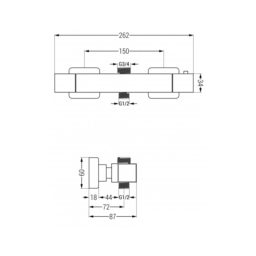 - 3/4 "pripojenie horné pre sprchový stĺp