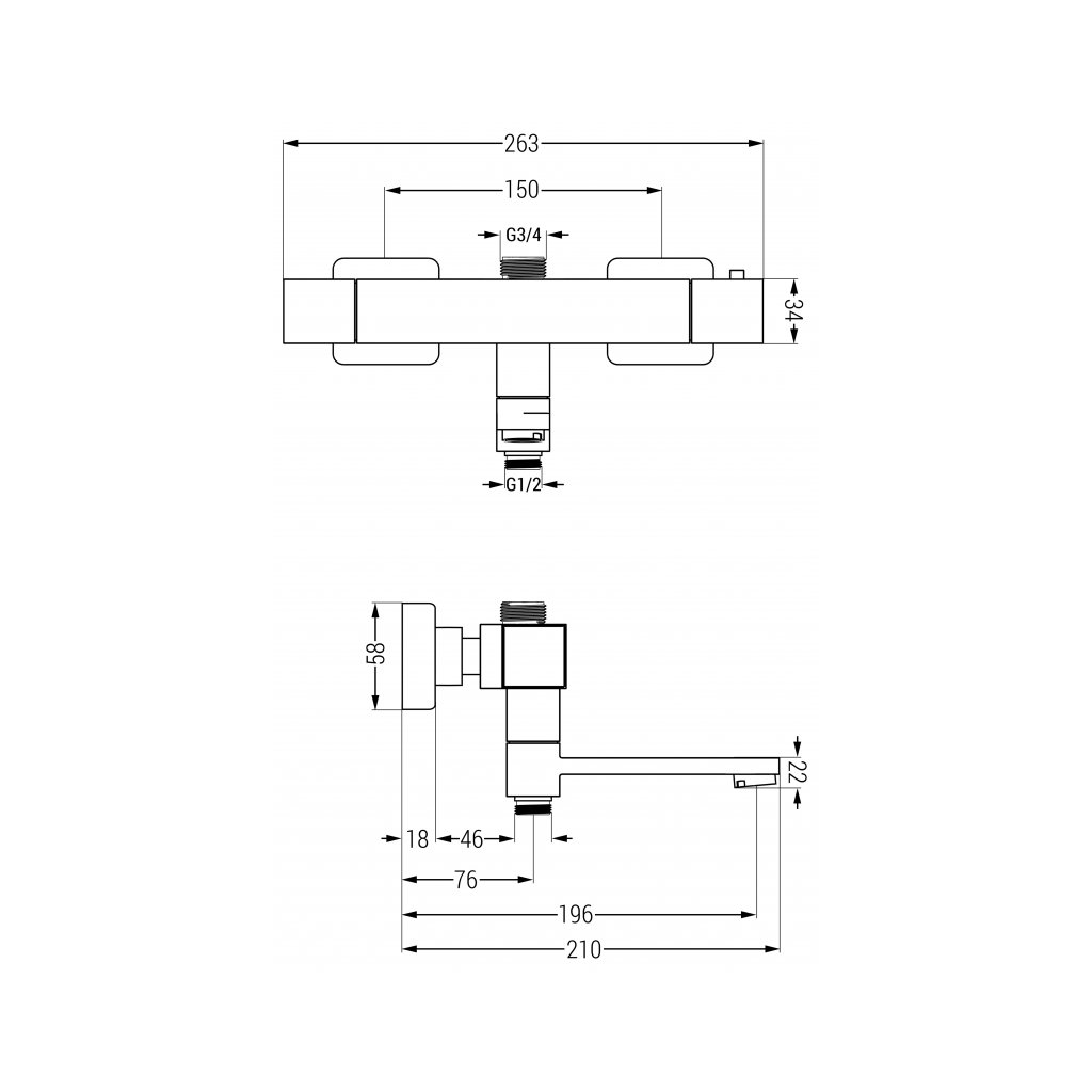- 3/4 "pripojenie (pre horný stĺp) a 1/2"pripojenie pre ručnú sprchu zdola
