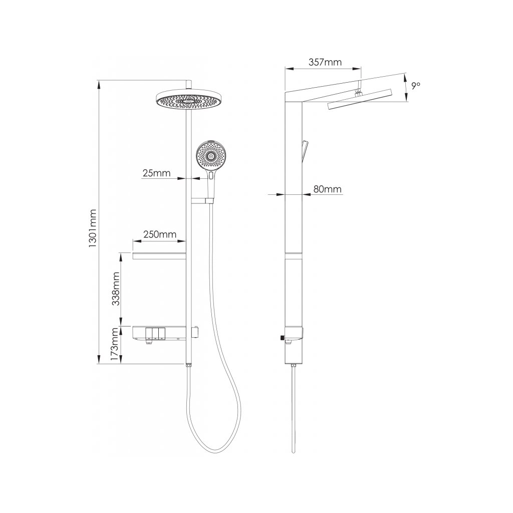 - Veľkosť sprchy: ø255 mm