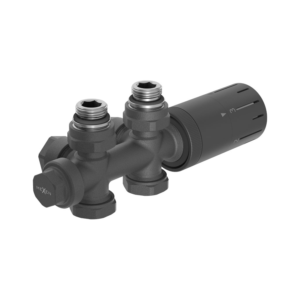 Mexen duplex G05, uhlová/priama termostatická súprava s pripojením DN50, antracitová, W908-958-66