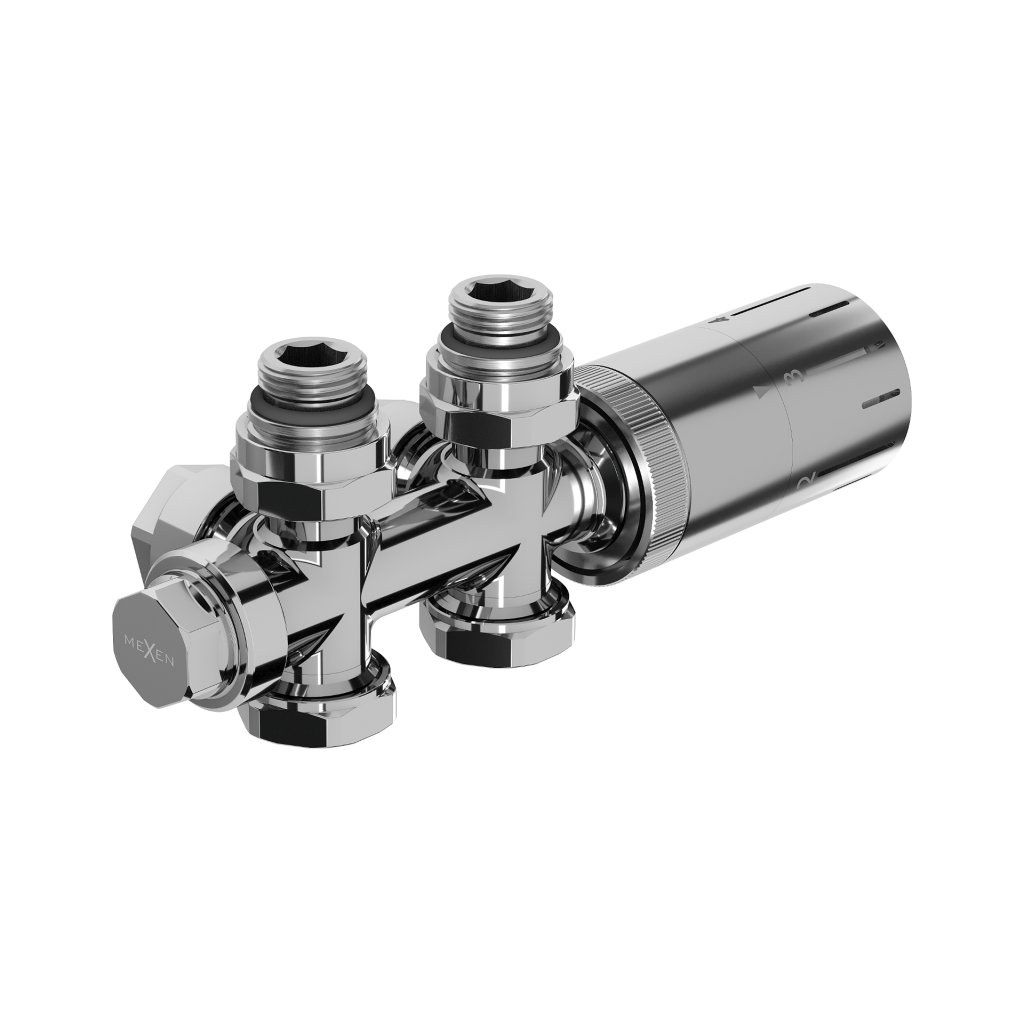Mexen duplex G05, uhlová/priama termostatická súprava s pripojením DN50, chrómová, W908-958-01