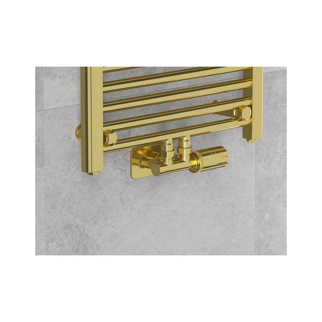 Mexen Duplex G05, uhlová termostatická súprava s hranatou krytkou S, DN50, zlatá lesklá, W907-958-910-50