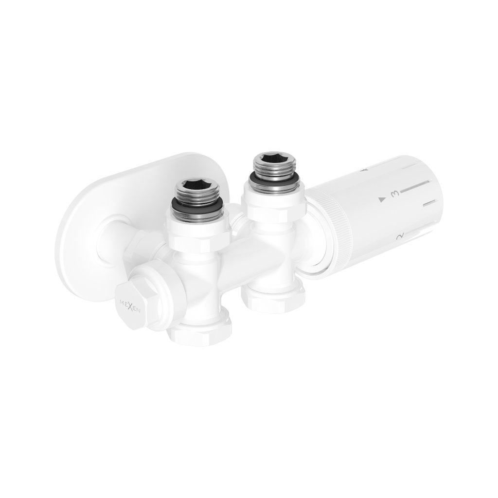 Mexen Duplex G05, uhlový/priamy termostatický set s okrúhlym krytom R, DN50, biela, W908-958-905-20
