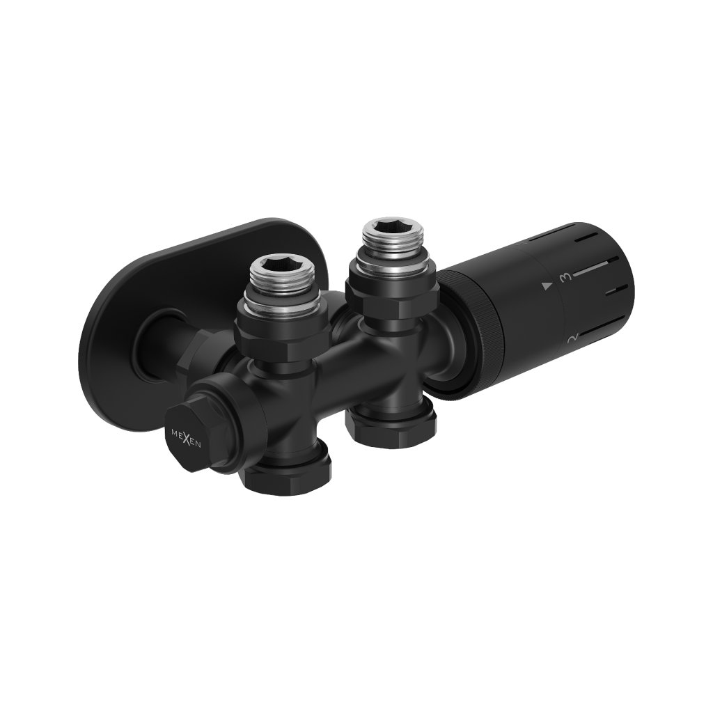 Mexen Duplex G05, uhlový/priamy termostatický set s okrúhlym krytom R, DN50, čierna matná, W908-958-905-70