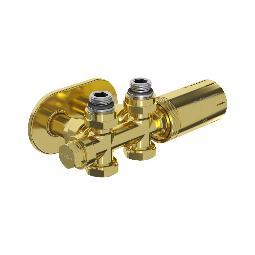 Mexen Duplex G05, uhlový/priamy termostatický set s okrúhlym krytom R, DN50, zlatá lesklá, W908-958-905-50
