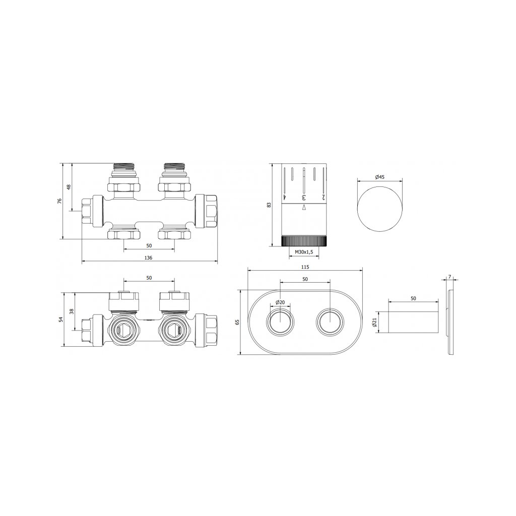 - Vrátane prídavných armatúr pre viacvrstvové rúry 16x2 mm a medené rúrkové tvarovky 15 mm