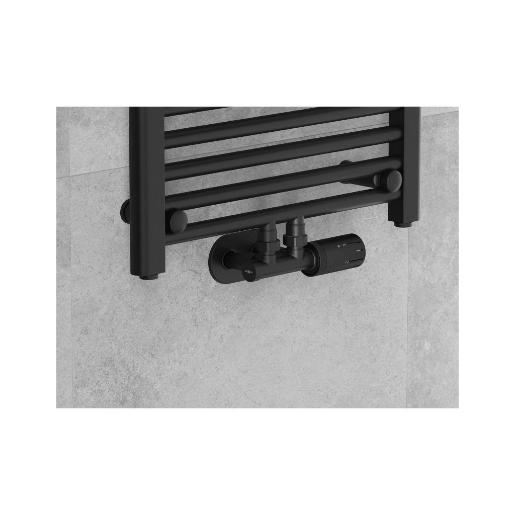 Mexen Duplex G05, uhlový termostatický set s okrúhlou krytkou, DN50, čierna matná, W907-958-905-70