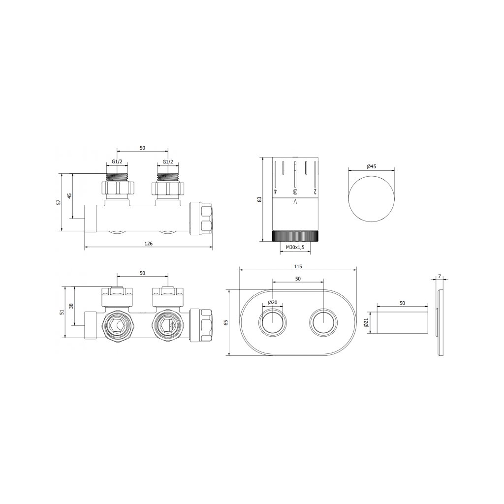 - Prívodný a uzatvárací ventil radiátora