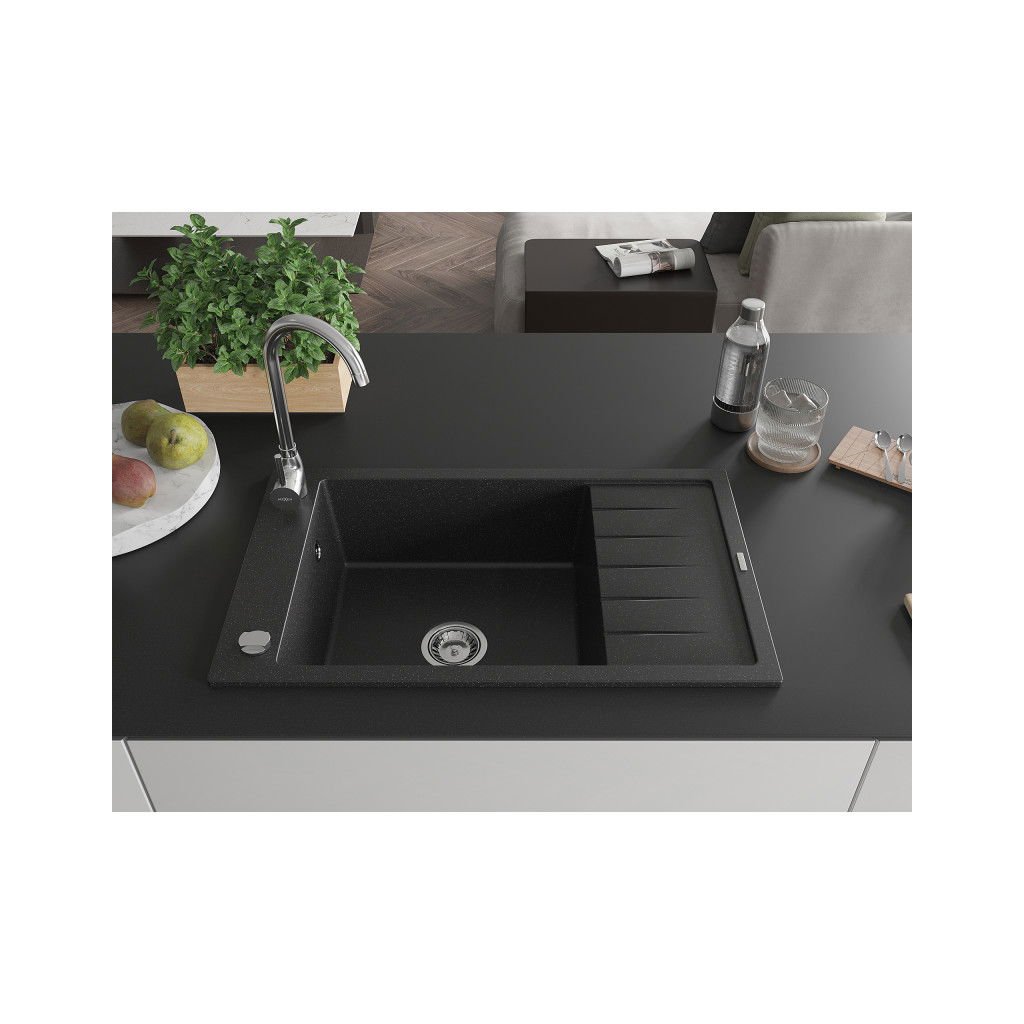 Mexen Elias - drez granitový 79,5x48,0cm, 1-komorový, čierna-strieborná, 6511791005-73