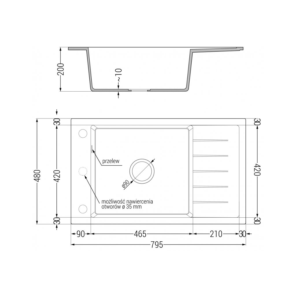 - Odtokový otvor: 3,5 ”;fi = 90 mm
