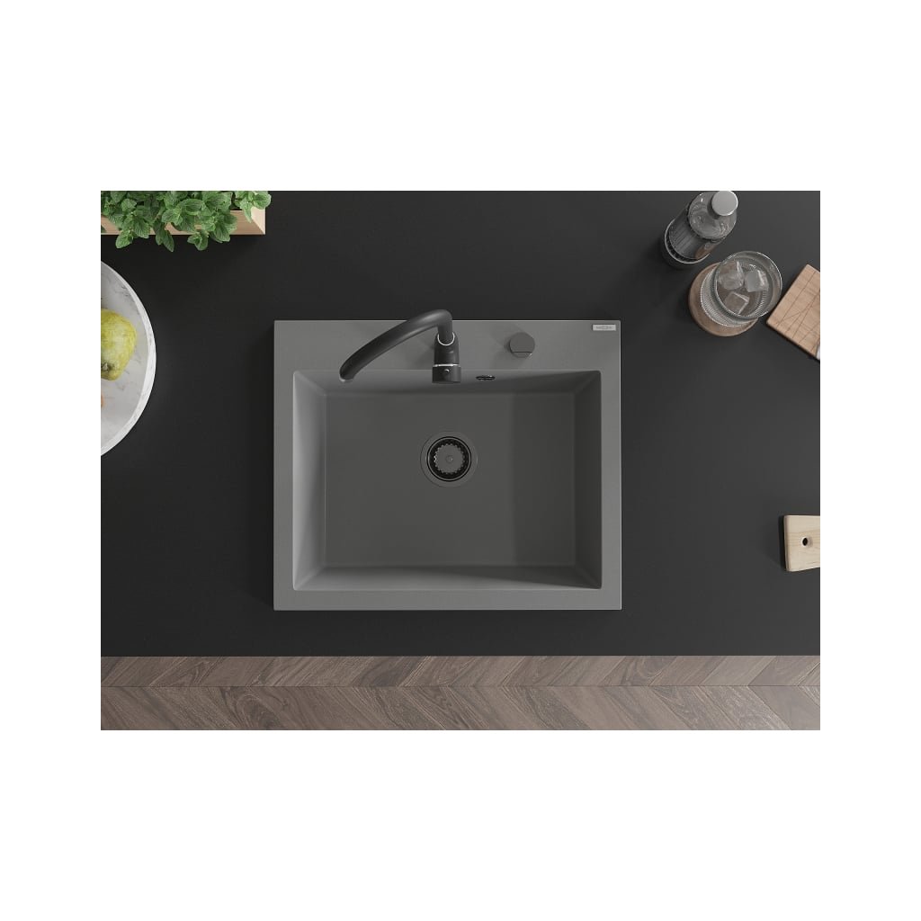 Mexen Elix, 1-komorový granitový drez 600 x 500 mm, sivý, čierny sifón - 6525601005-71-B