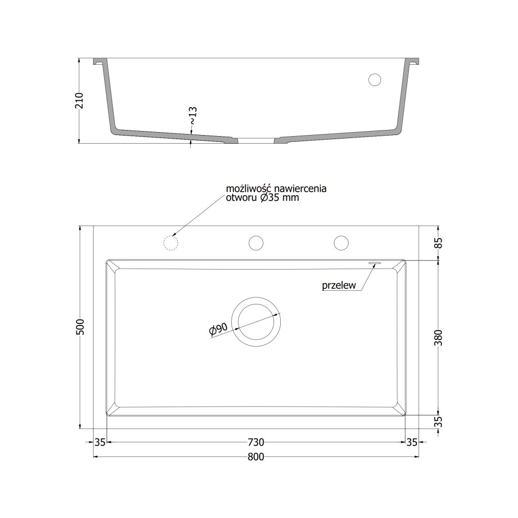 Jeden dodatočný zapustený otvor ø35 na individuálne vŕtanie