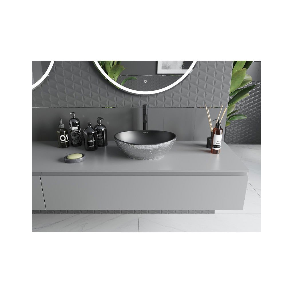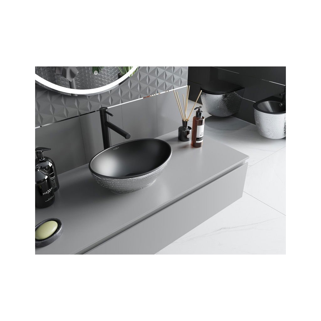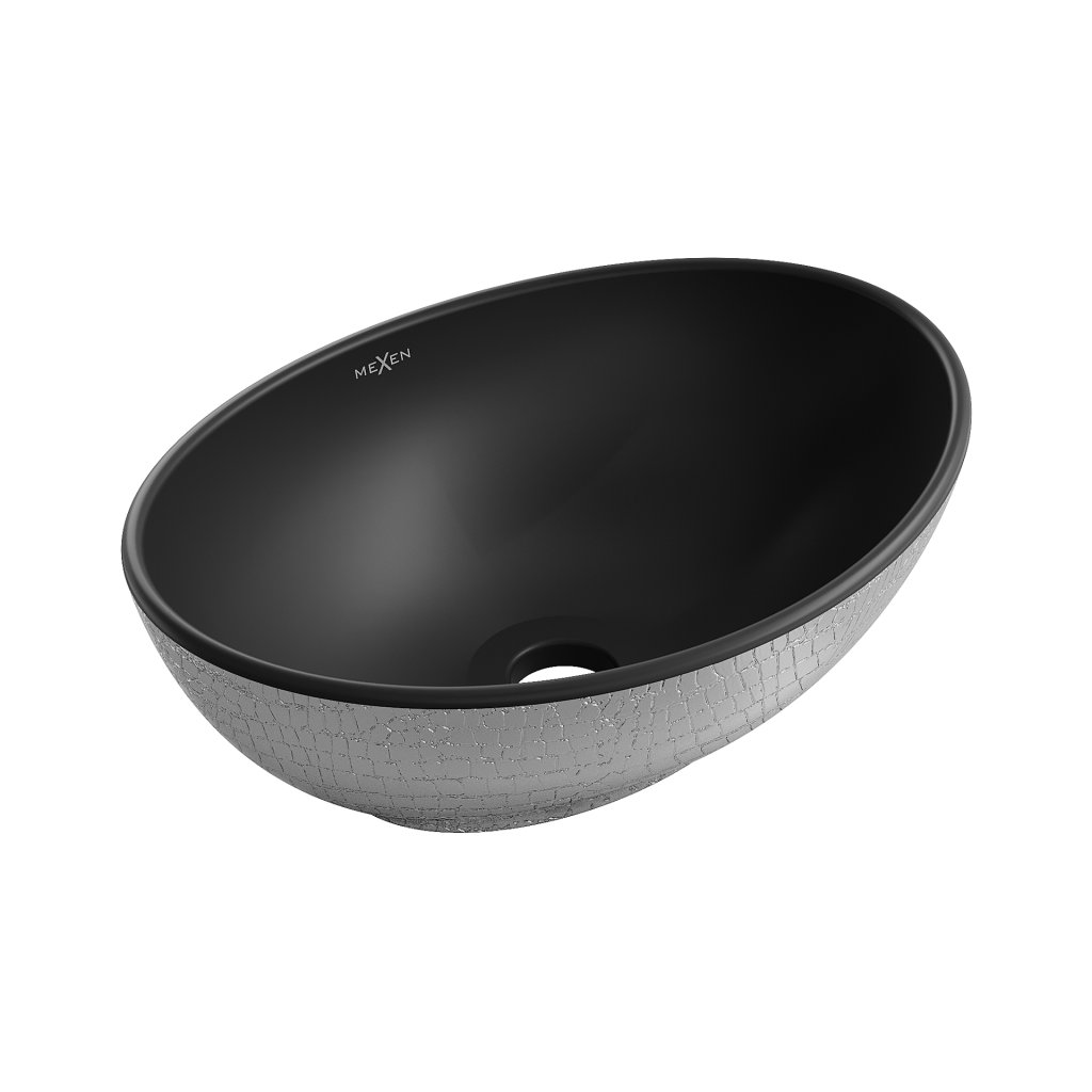 Mexen Elza, keramické umývadlo na dosku 405 x 330 mm, čierna matná-strieborný vzor, 21014022