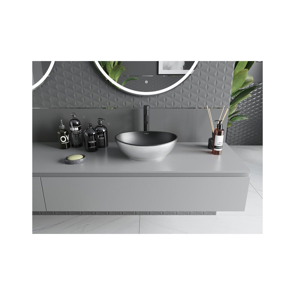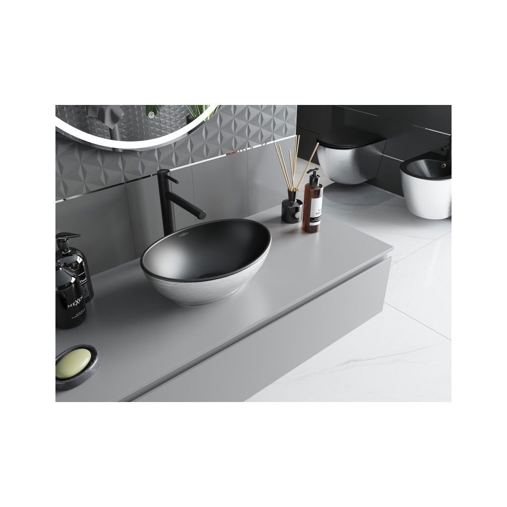 Mexen Elza, keramické umývadlo na dosku 405 x 330 mm, čierna matná-strieborný vzor, 21014023