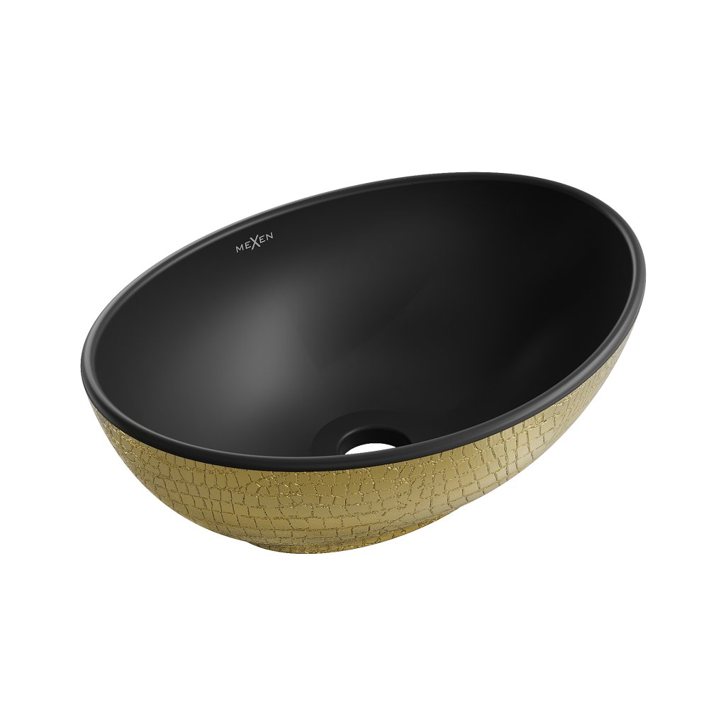 Mexen Elza, keramické umývadlo na dosku 405 x 330 mm, čierna matná-zlatý vzor, 21014028