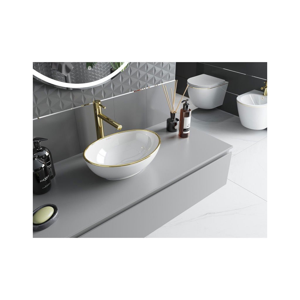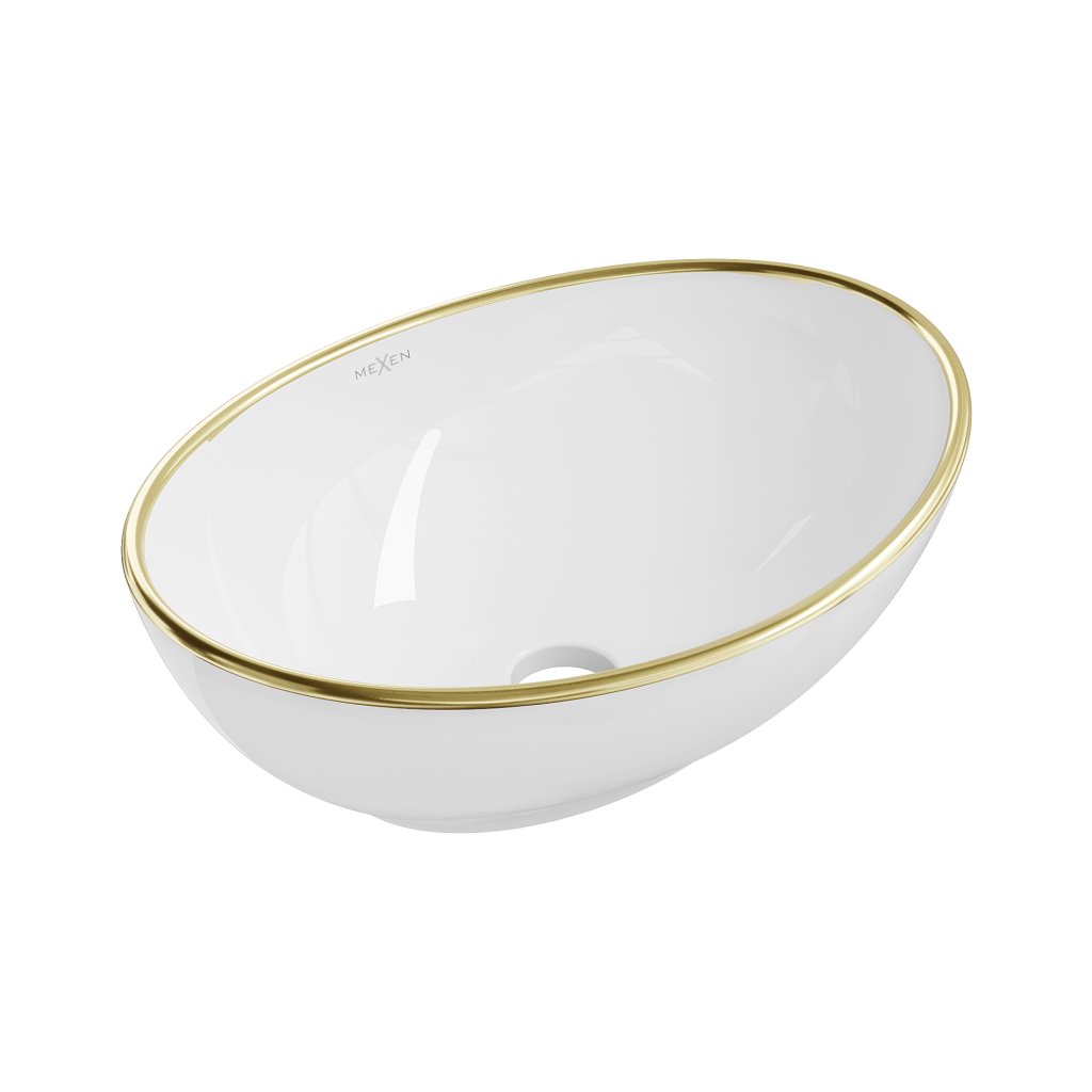 Mexen Elza, umývadlo na dosku 40,5x33 cm, biela-zlatý okraj, 21014005