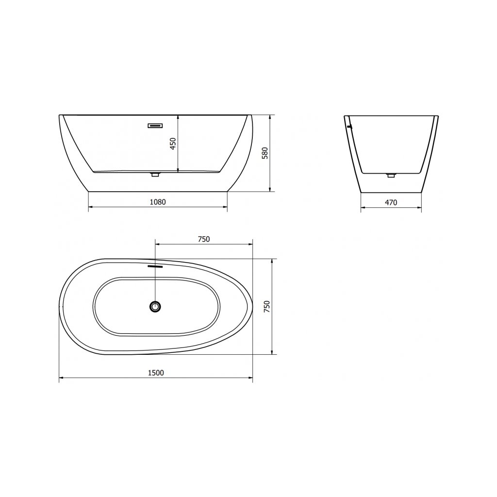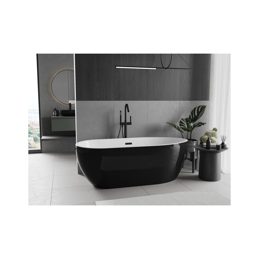 Mexen Eos, voľne stojaca vaňa 150 x 75 cm, biela-čierna, čierny matný prepad, 52471507575-70