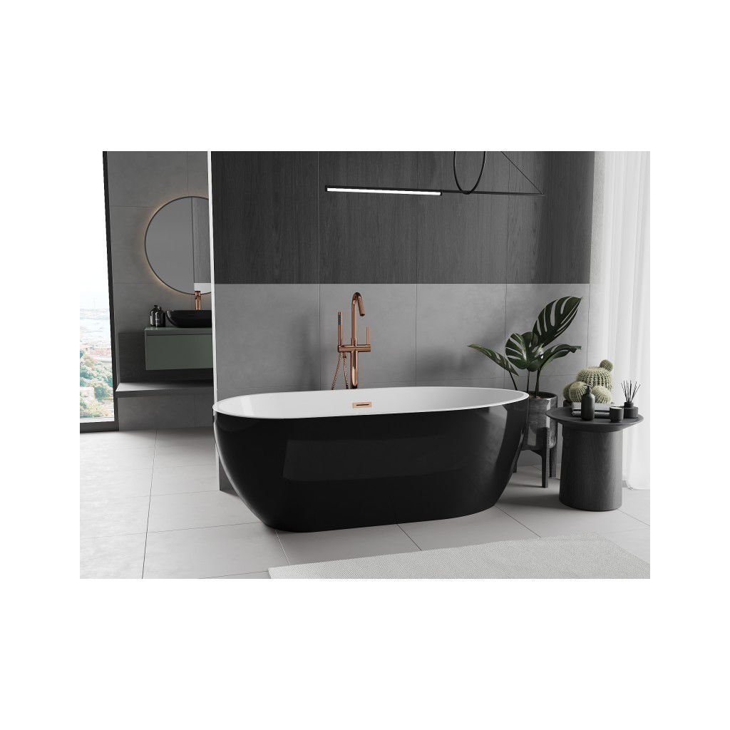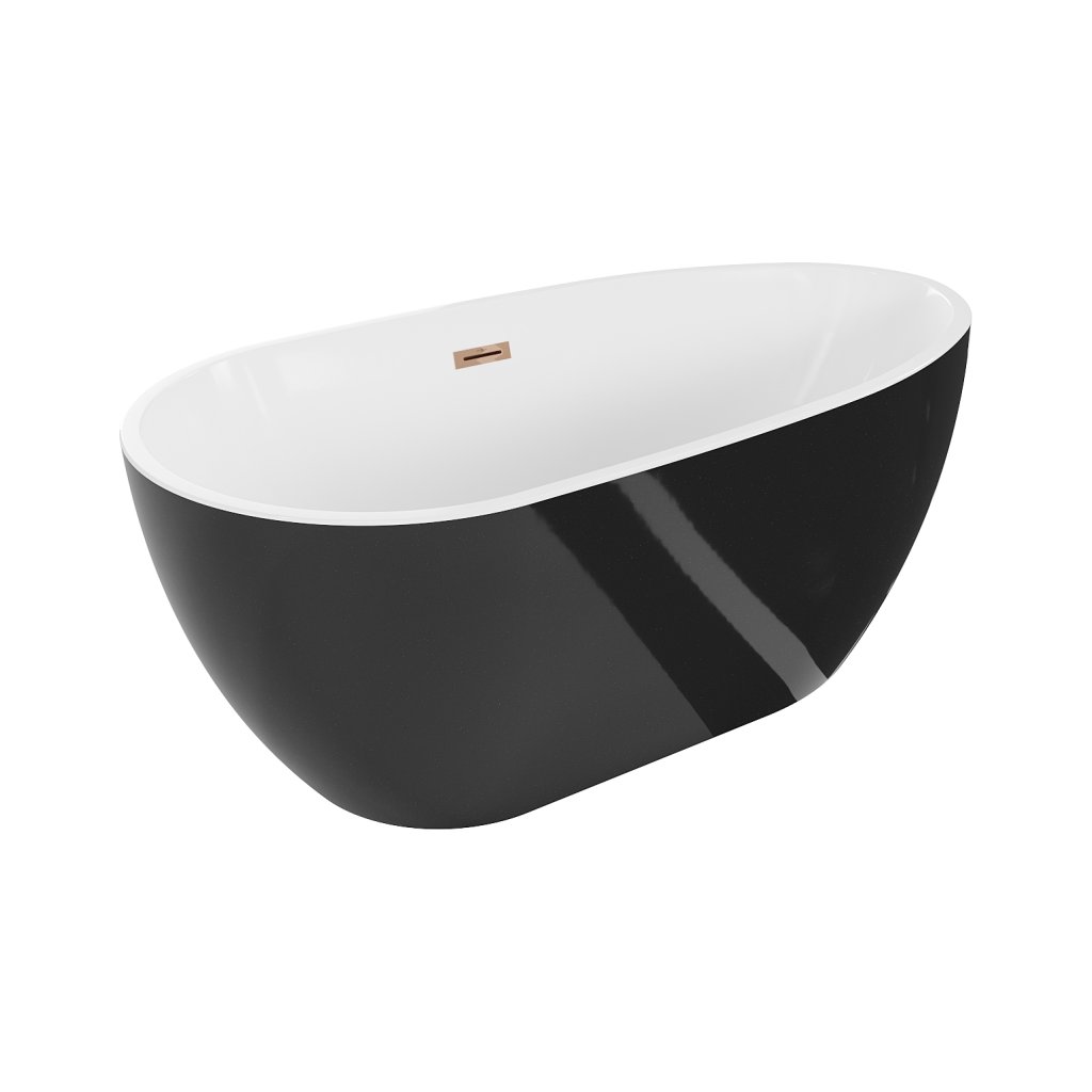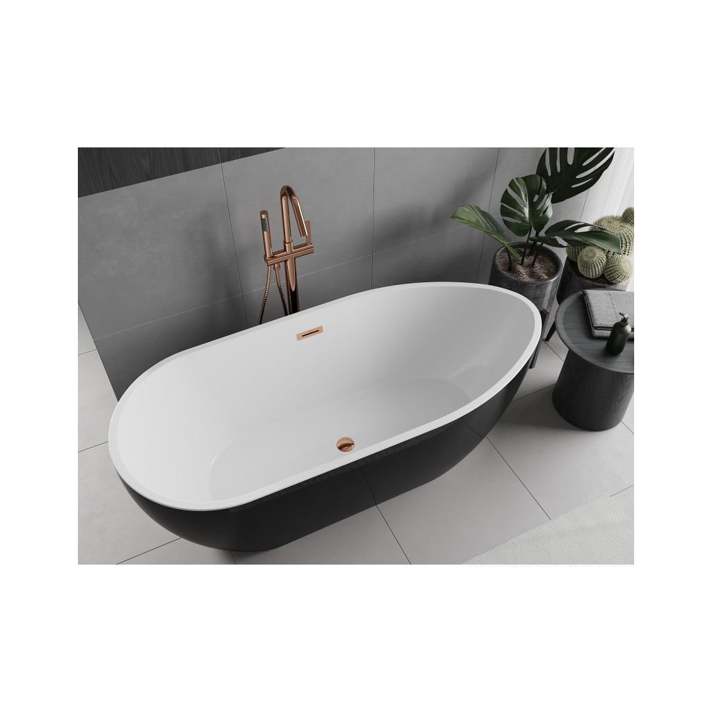 Mexen Eos, voľne stojaca vaňa 150 x 75 cm, biela-čierna, ružové zlato prepad, 52471507575-60