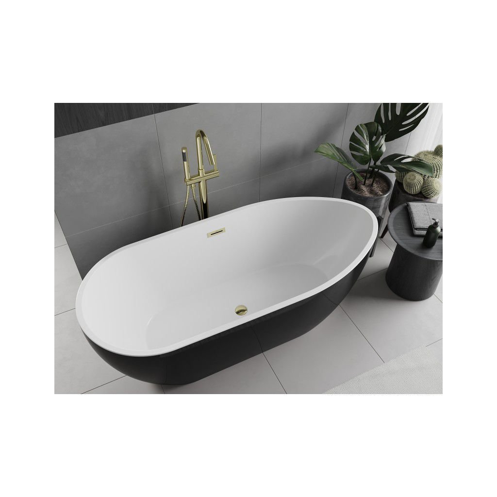 Mexen Eos, voľne stojaca vaňa 150 x 75 cm, biela-čierna, zlatý lesklý prepad, 52471507575-50