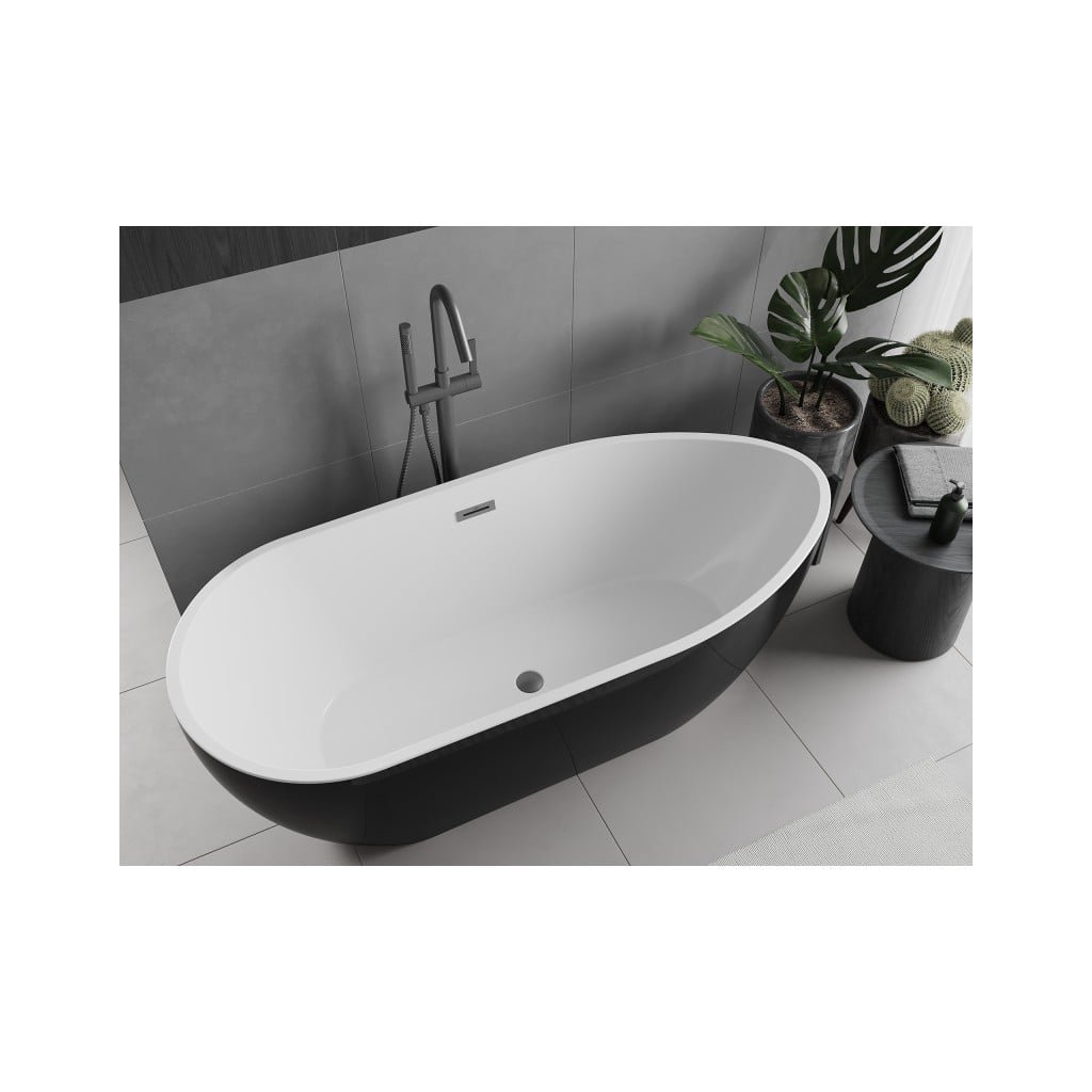 Mexen Eos, voľne stojaca vaňa 170 x 75 cm, biela-čierna, brúsený grafit prepad, 52471707575-95