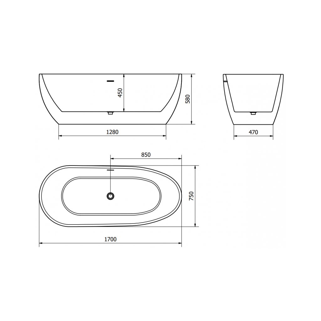 Mexen Eos, voľne stojaca vaňa 170 x 75 cm, biela-čierna, grafitový prepad, 52471707575-66