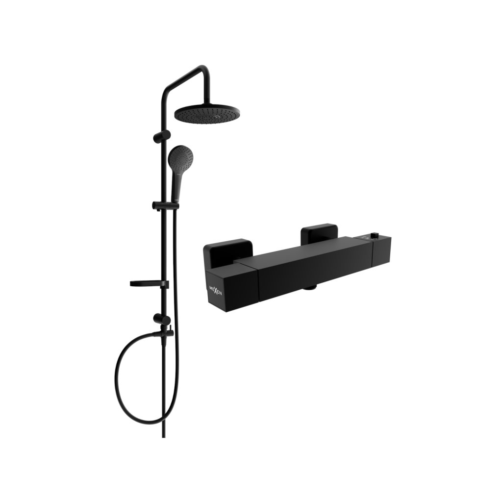Mexen Erik, sprchový set s dažďovou sprchou a CUBE termostatickou sprchovou batériou, čierna matná, 77200205-70