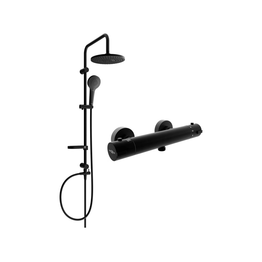 Mexen Erik, sprchový set s dažďovou sprchou a KAI termostatickou sprchovou batériou, čierna matná, 77100205-70