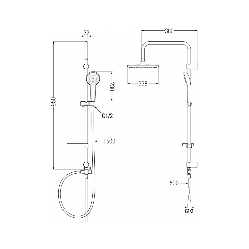 - Výška ručnej sprchovej hlavice: 230 mm
