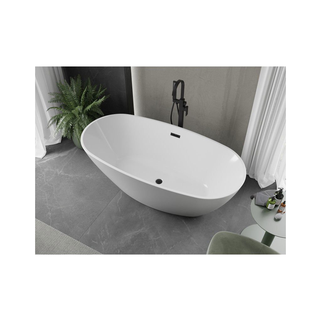 Mexen Eris, voľne stojaca vaňa 155 x 80 cm, biela, čierny matný prepad, 53441558000-70