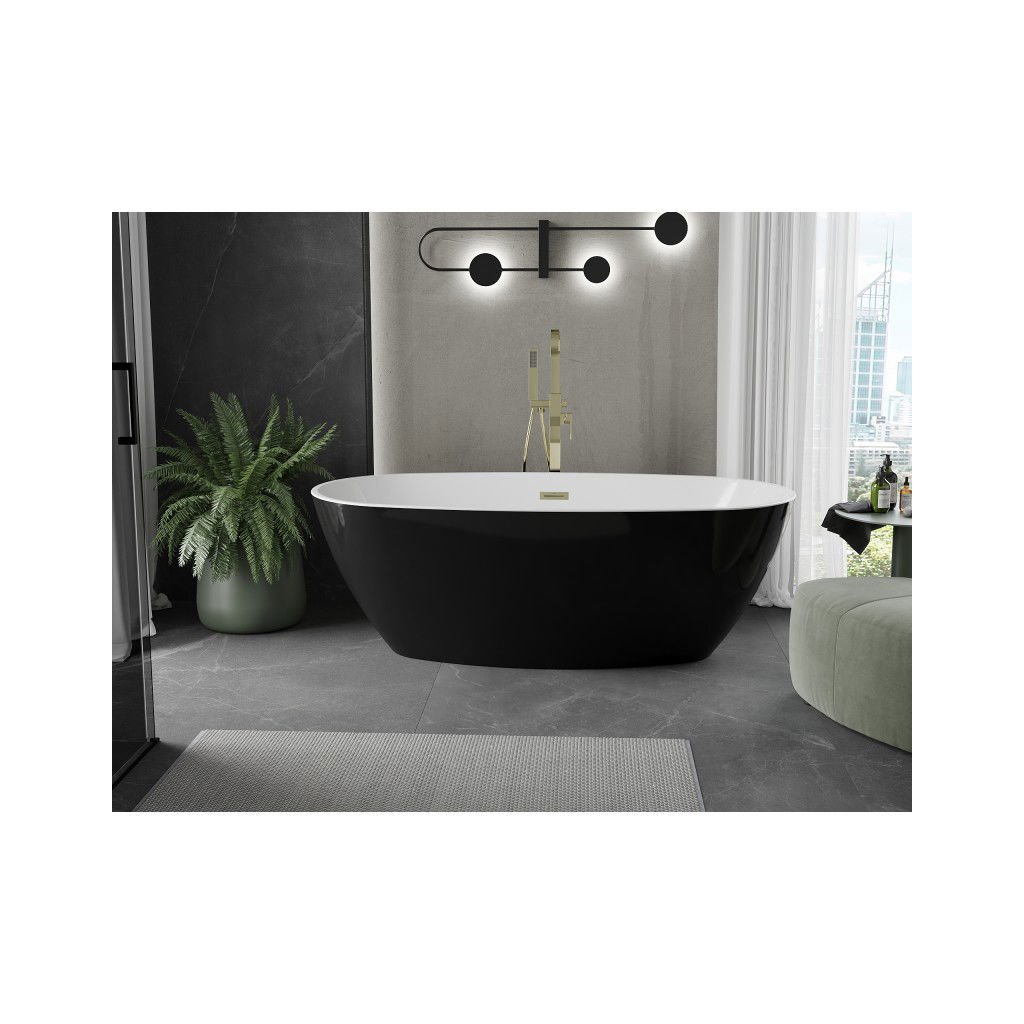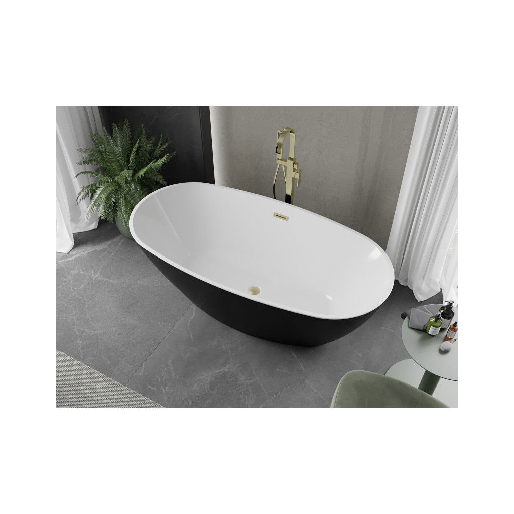 Mexen Eris, voľne stojaca vaňa 155 x 80 cm, biela-čierna, zlatý matný prepad, 53441558075-55