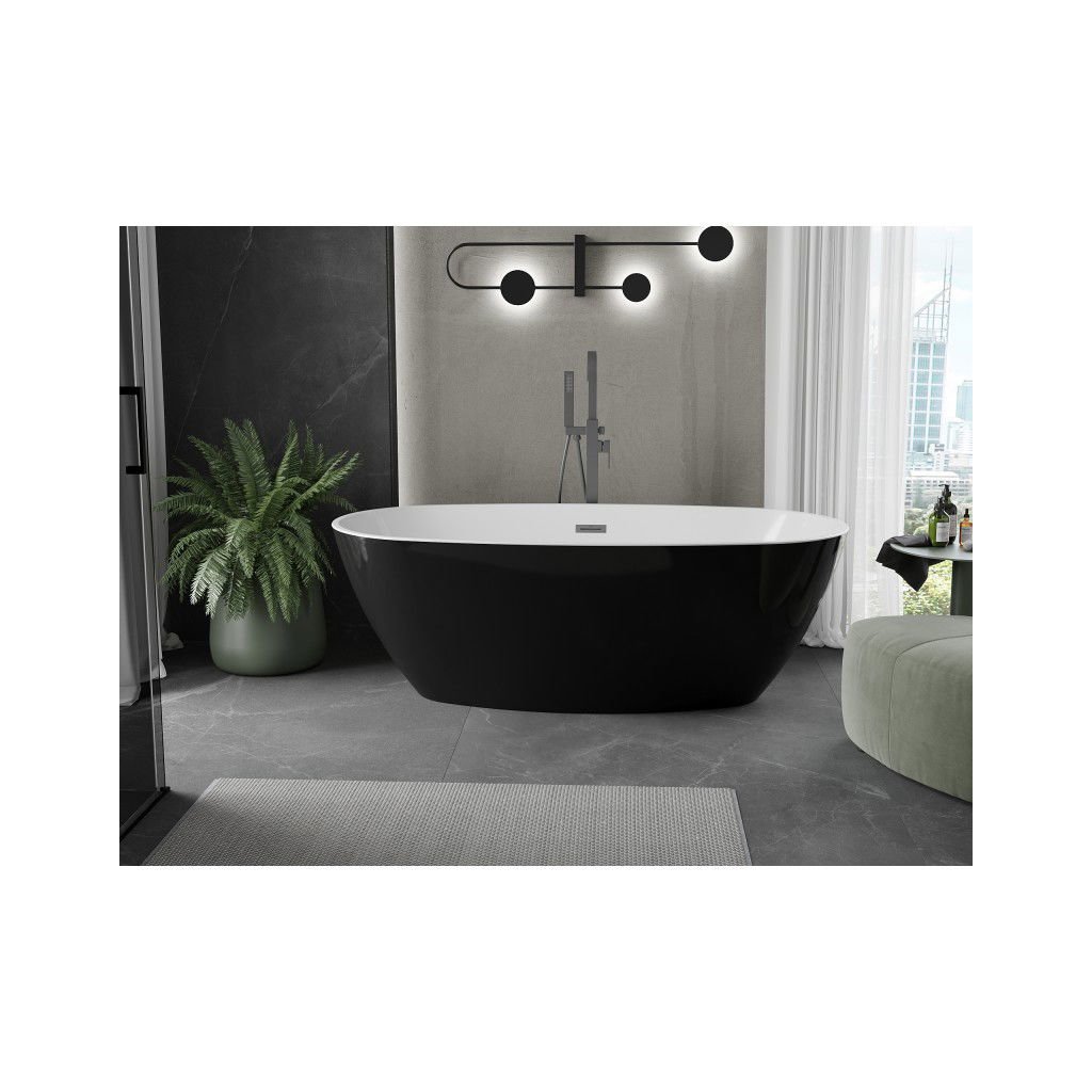Mexen Eris, voľne stojaca vaňa 180 x 80 cm, biela-čierna, grafitový prepad, 53441808075-66