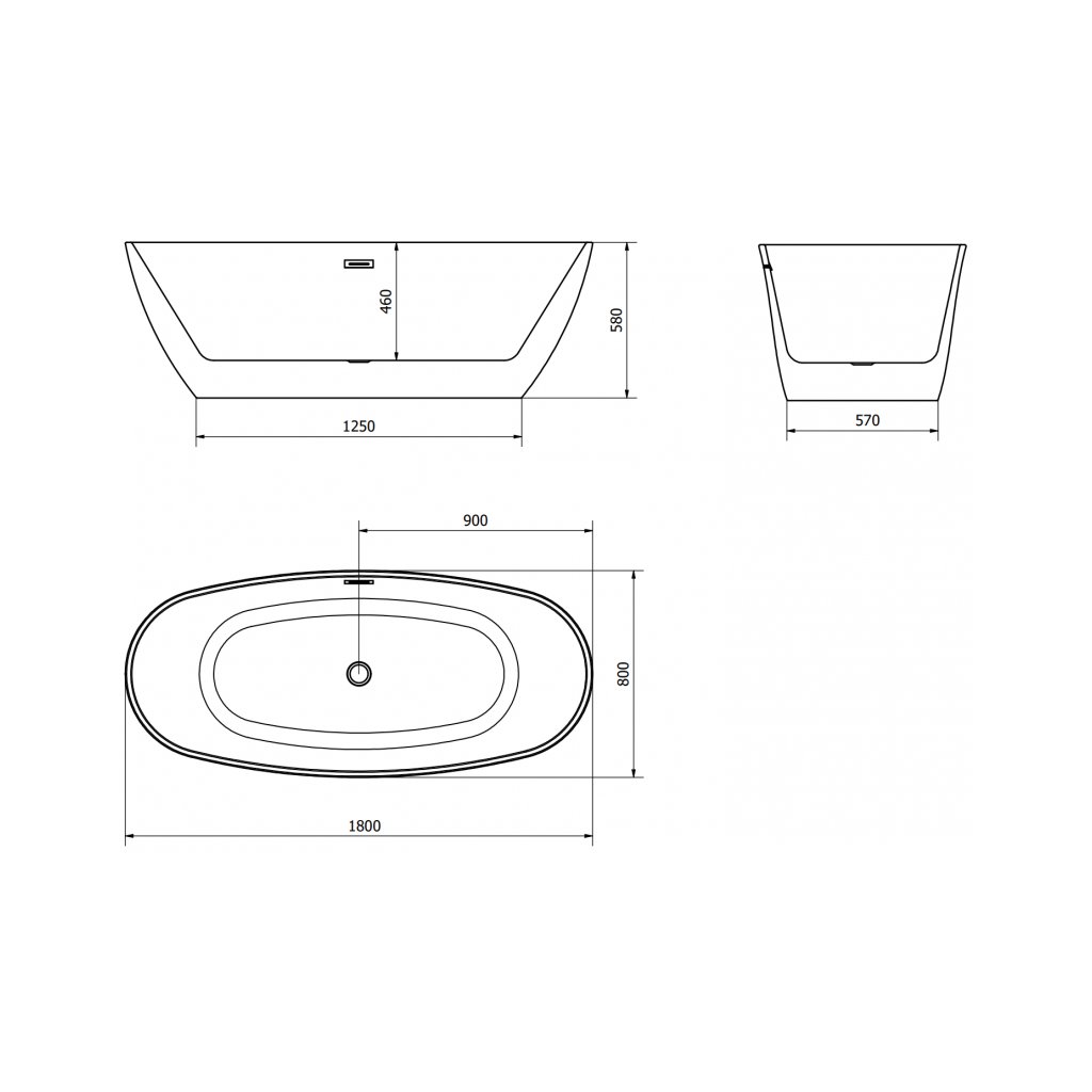 Mexen Eris, voľne stojaca vaňa 180 x 80 cm, biela-čierna, zlatý lesklý prepad, 53441808075-50