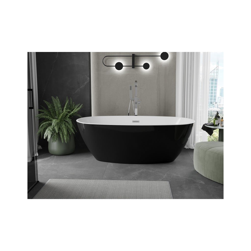 Mexen Eris, voľne stojaca vaňa 180 x 95 cm, biela-čierna, chrómový prepad, 53441809575-01