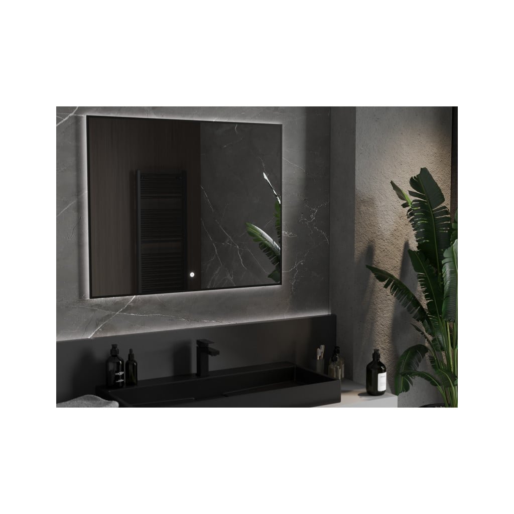 Mexen Erma, LED kúpeľňové zrkadlo s podsvietením a čiernym rámom 100x80 cm, 6000K, ochrana proti zahmlievaniu, 9814-100-080-611-70