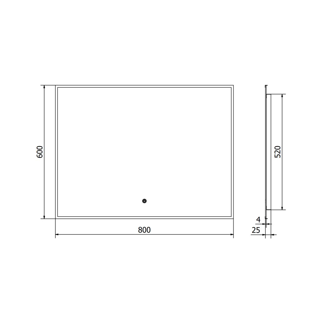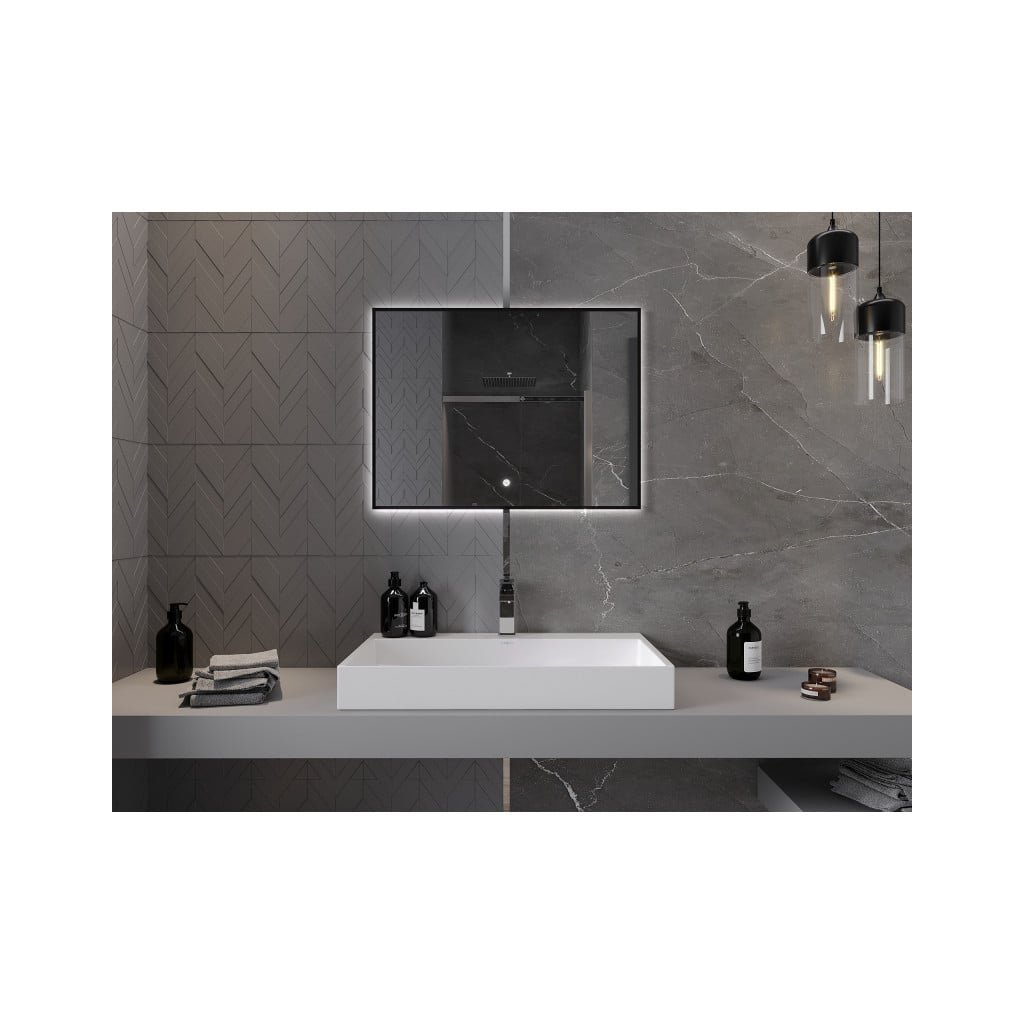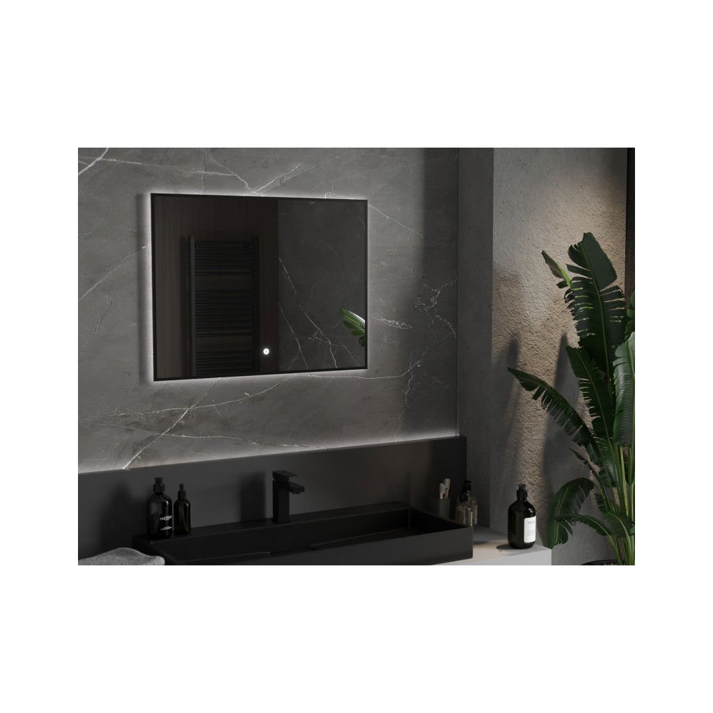 Mexen Erma, LED kúpeľňové zrkadlo s podsvietením a čiernym rámom 80x60 cm, 6000K, ochrana proti zahmlievaniu, 9814-080-060-611-70