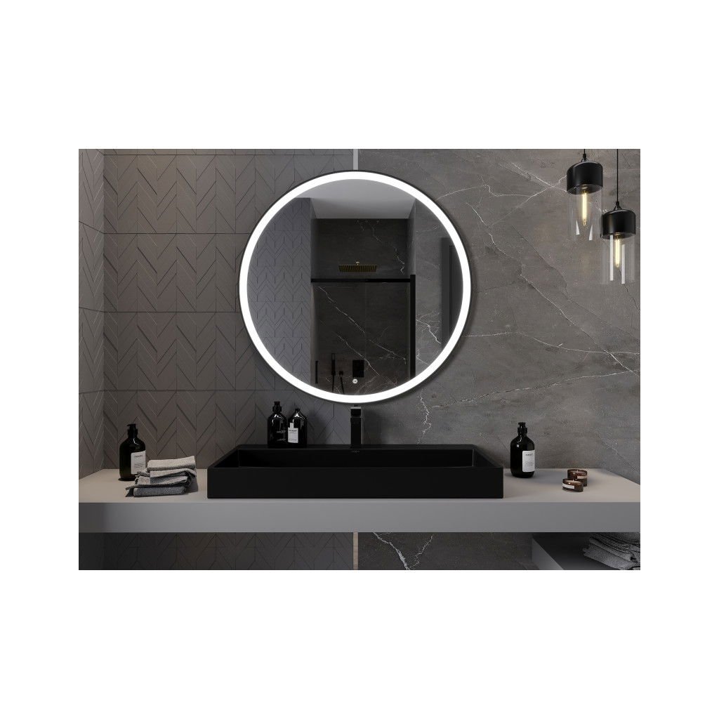 Mexen Esso, okrúhle LED podsvietené kúpeľňové zrkadlo 100 cm, 6000K, vykurovacia podložka proti zahmlievaniu, čierny rám, 9825-100-100-611-70