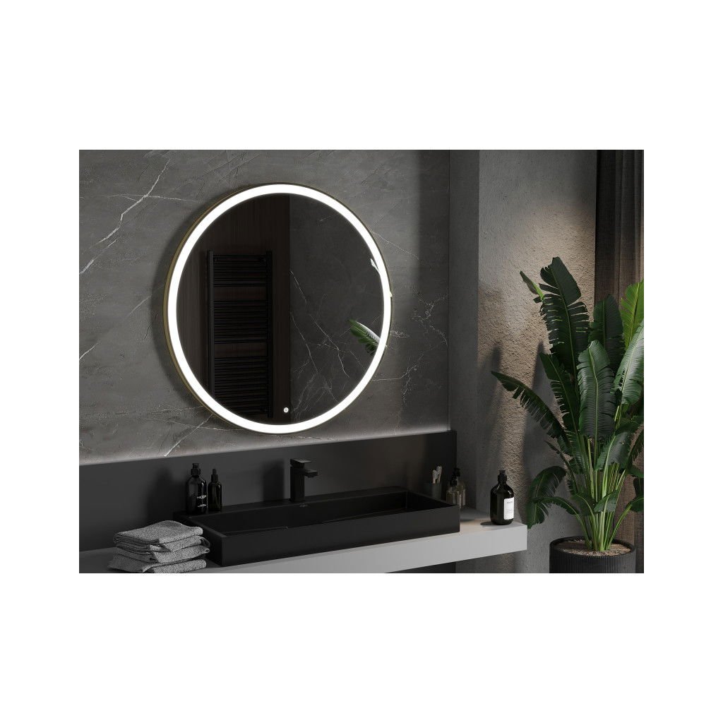 Mexen Esso, okrúhle LED podsvietené kúpeľňové zrkadlo 100 cm, 6000K, vykurovacia podložka proti zahmlievaniu, zlatý rám, 9825-100-100-611-50