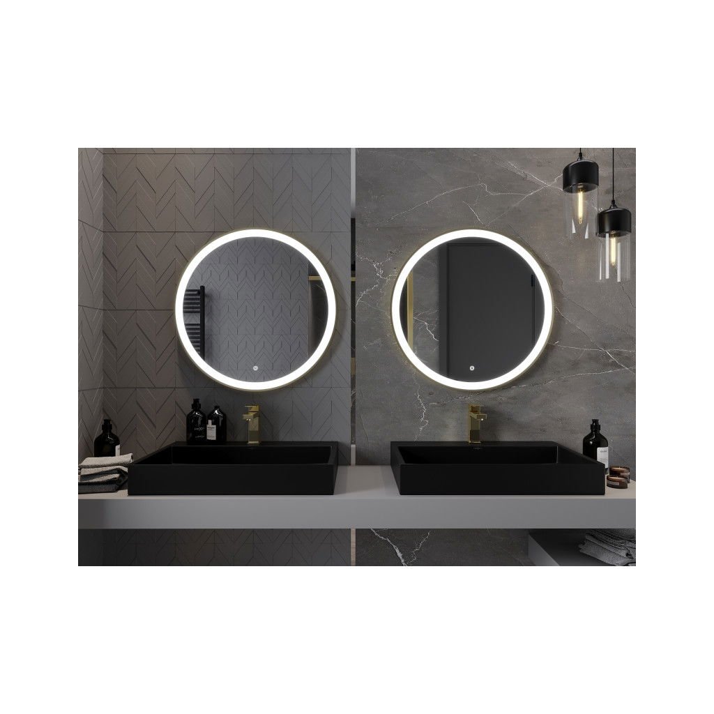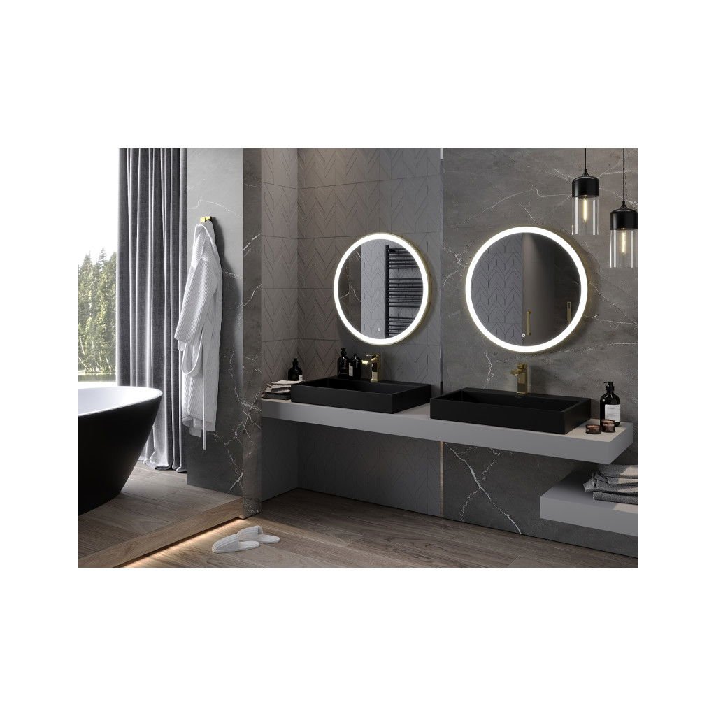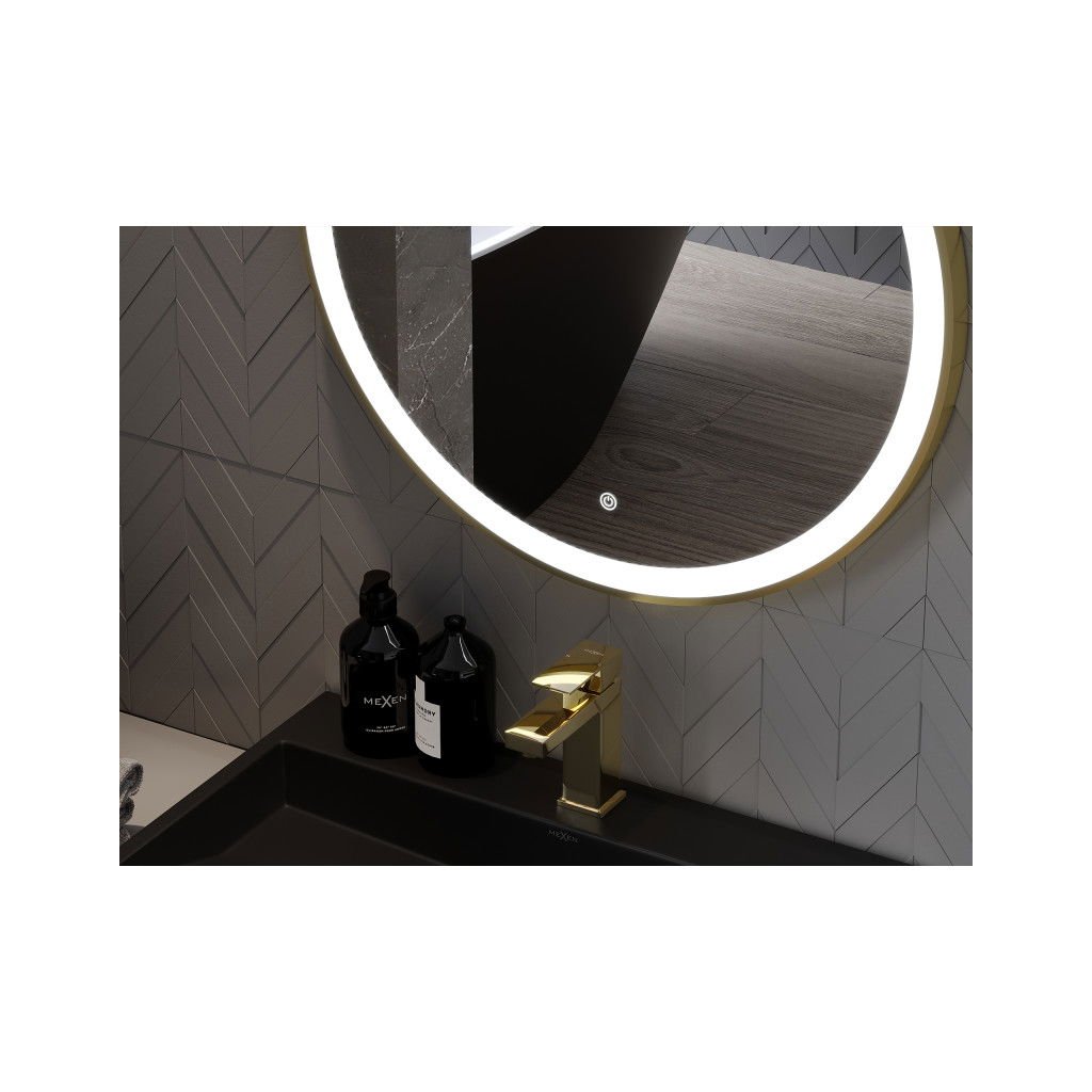 Mexen Esso, okrúhle LED podsvietené kúpeľňové zrkadlo 70 cm, 6000K, vykurovacia podložka proti zahmlievaniu, zlatý rám, 9825-070-070-611-50