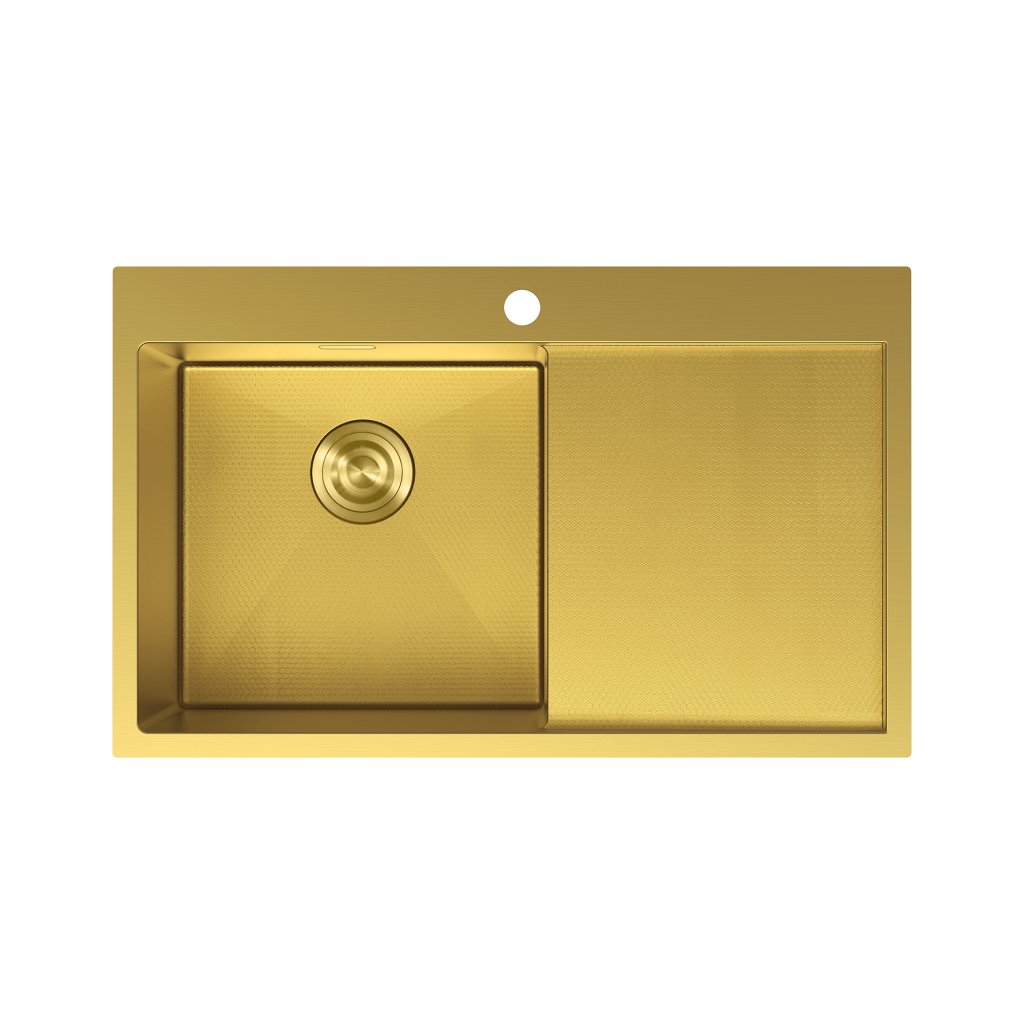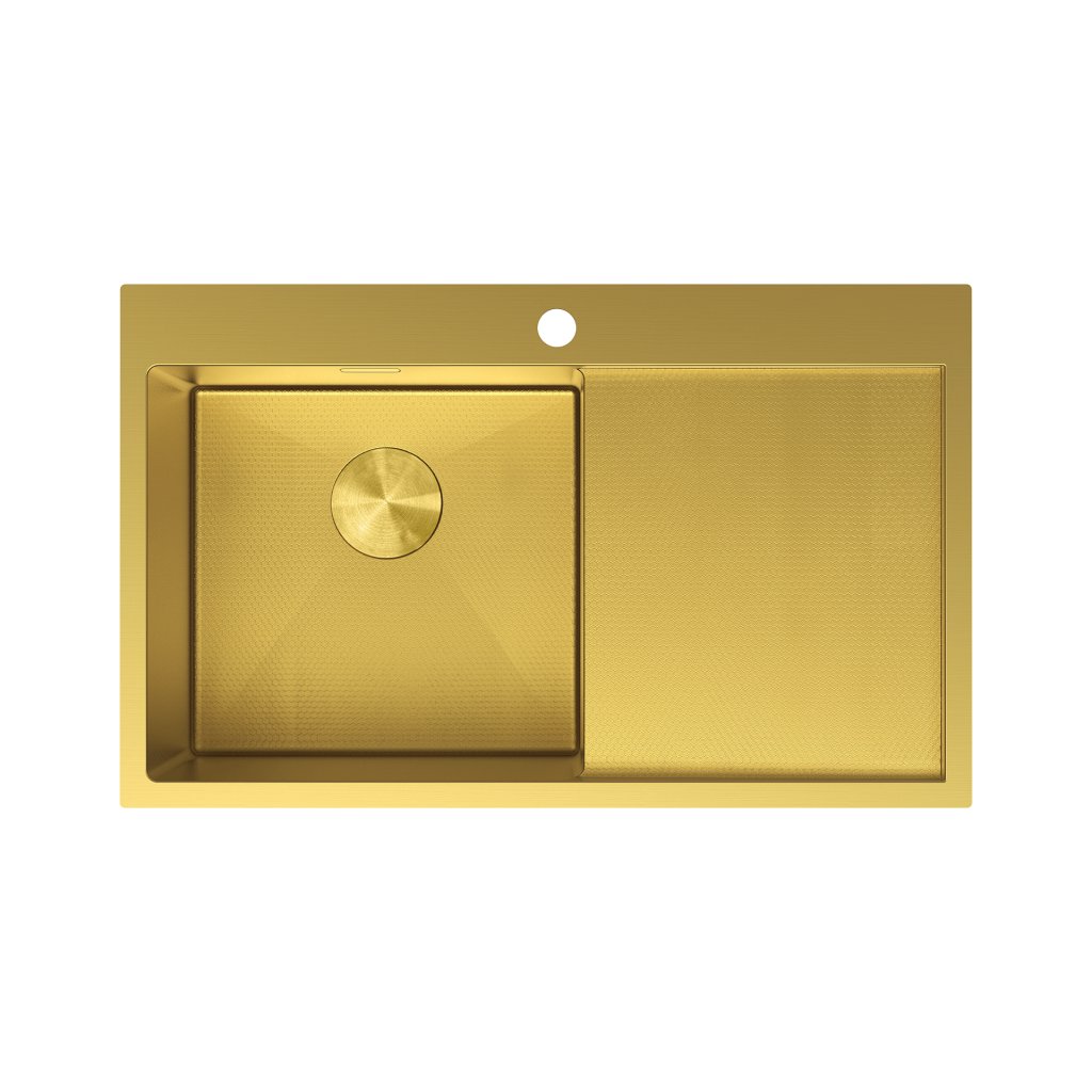 Mexen Exar, 1-komorový nerezový drez s odkvapkávačom, ľavý, 780 x 480 mm, brúsená zlatá, vzor voština, 6433781010L-55HC