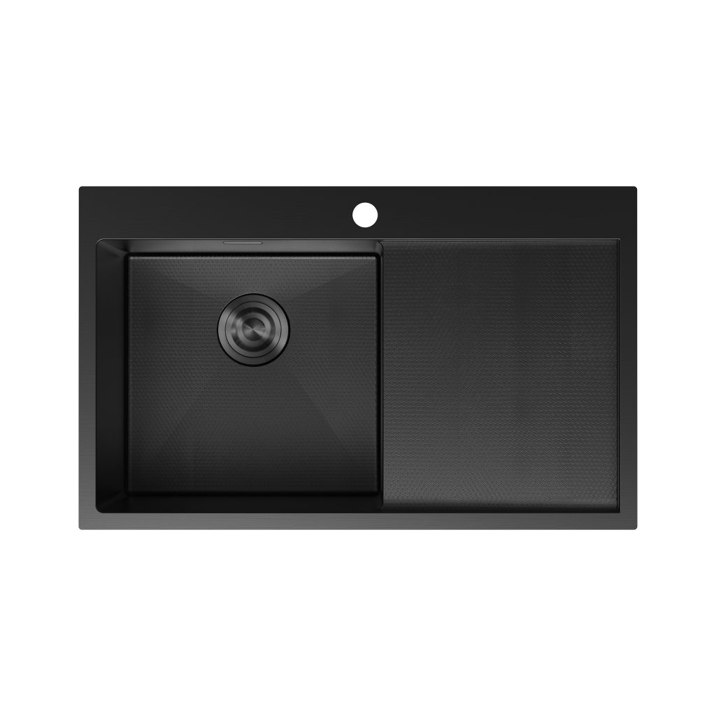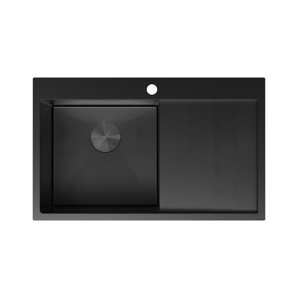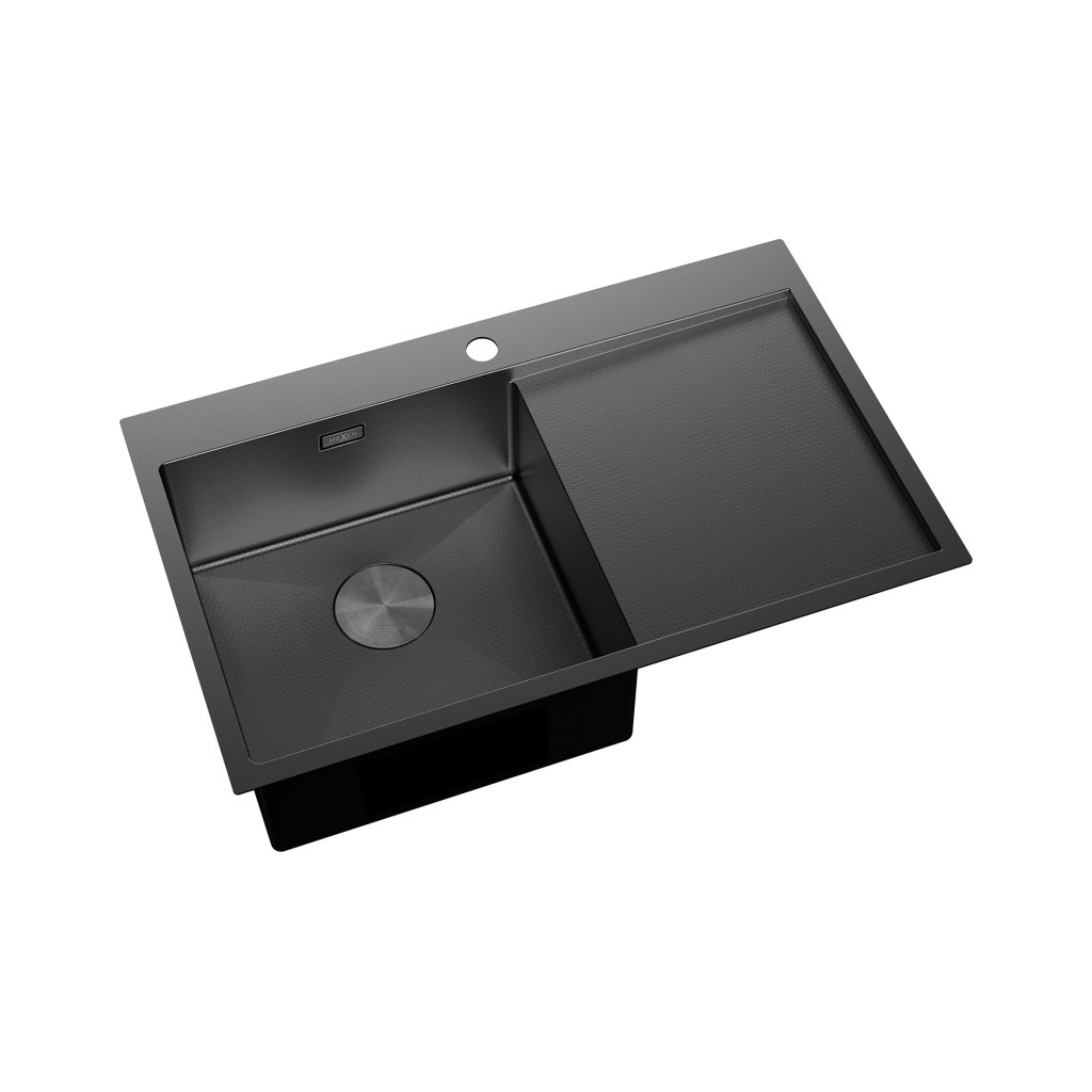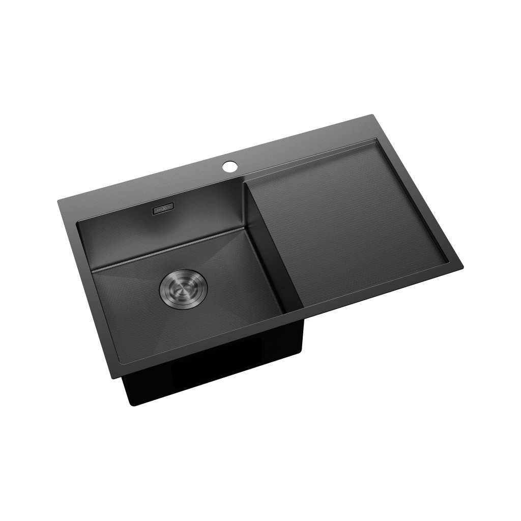Mexen Exar, 1-komorový nerezový drez s odkvapkávačom, ľavý, 780 x 480 mm, čierna, vzor voština, 6433781010L-70HC