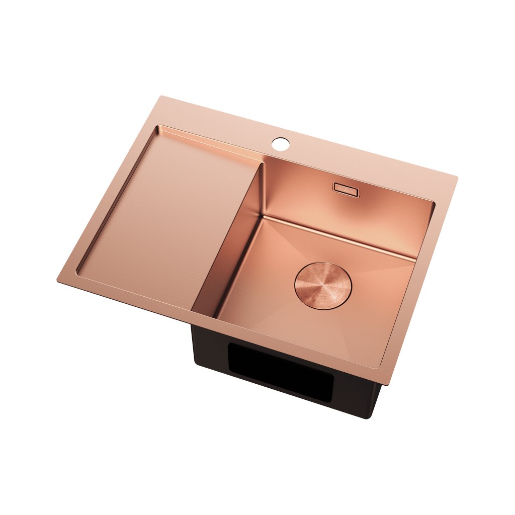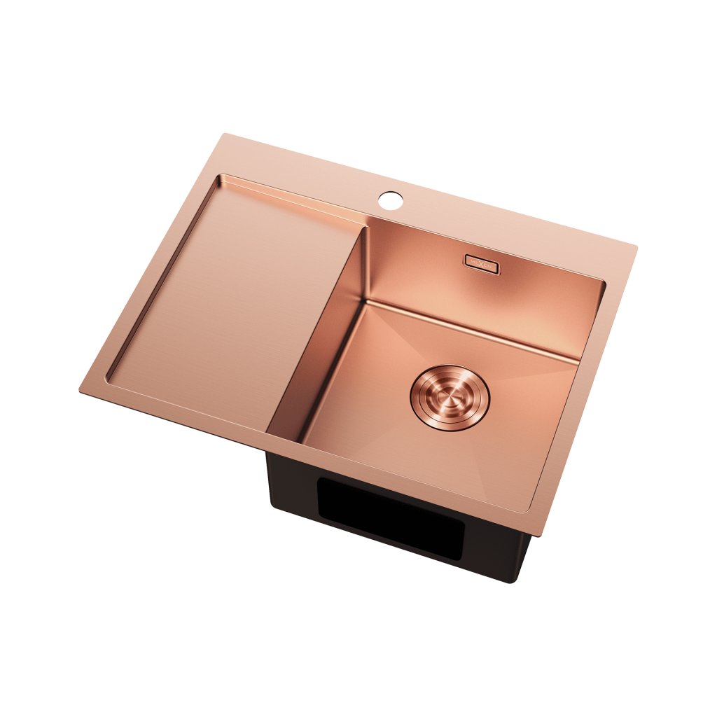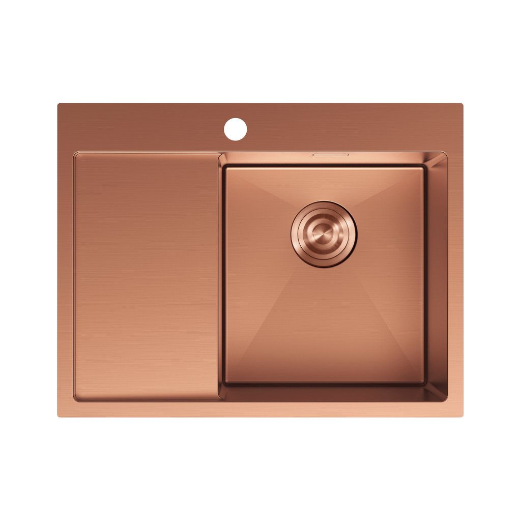 Mexen Exar, 1-komorový nerezový drez s odkvapkávačom, pravý, 620 x 480 mm, brúsená meď, 6432621005P-65