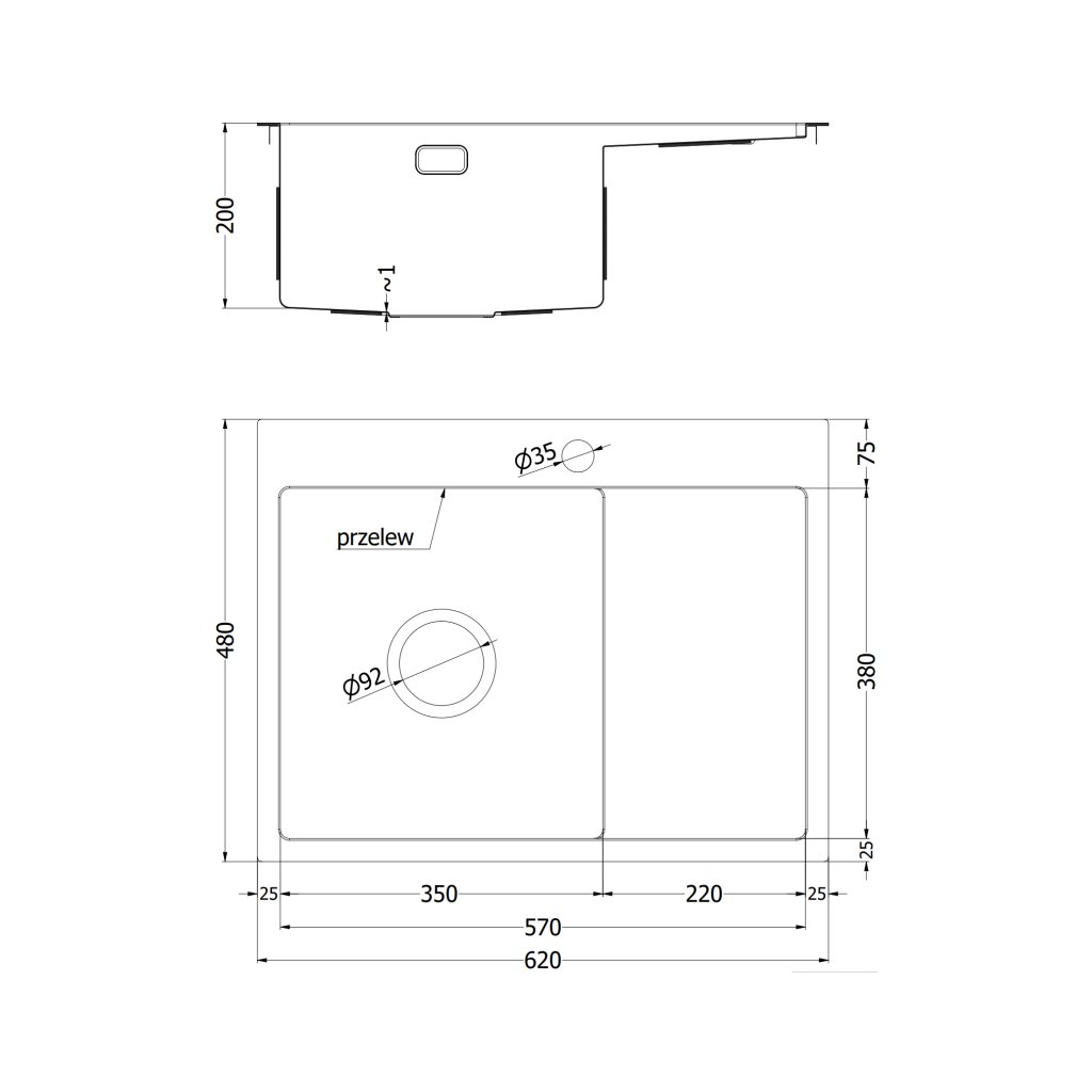 - Spôsob montáže: zapustený do dosky, pravý variant