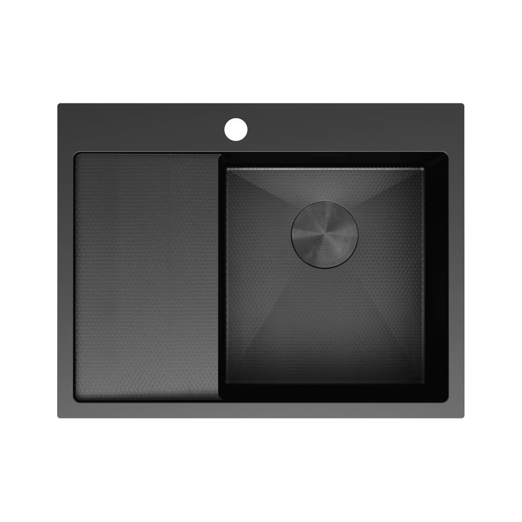 Mexen Exar, 1-komorový nerezový drez s odkvapkávačom, pravý, 620 x 480 mm, czarny HC -6432621005P-70HC