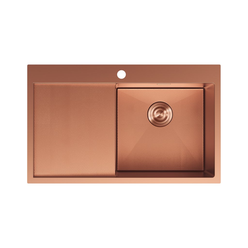 Mexen Exar, 1-komorový nerezový drez s odkvapkávačom, pravý, 780 x 480 mm, brúsená meď, vzor voština, 6434781010P-65HC